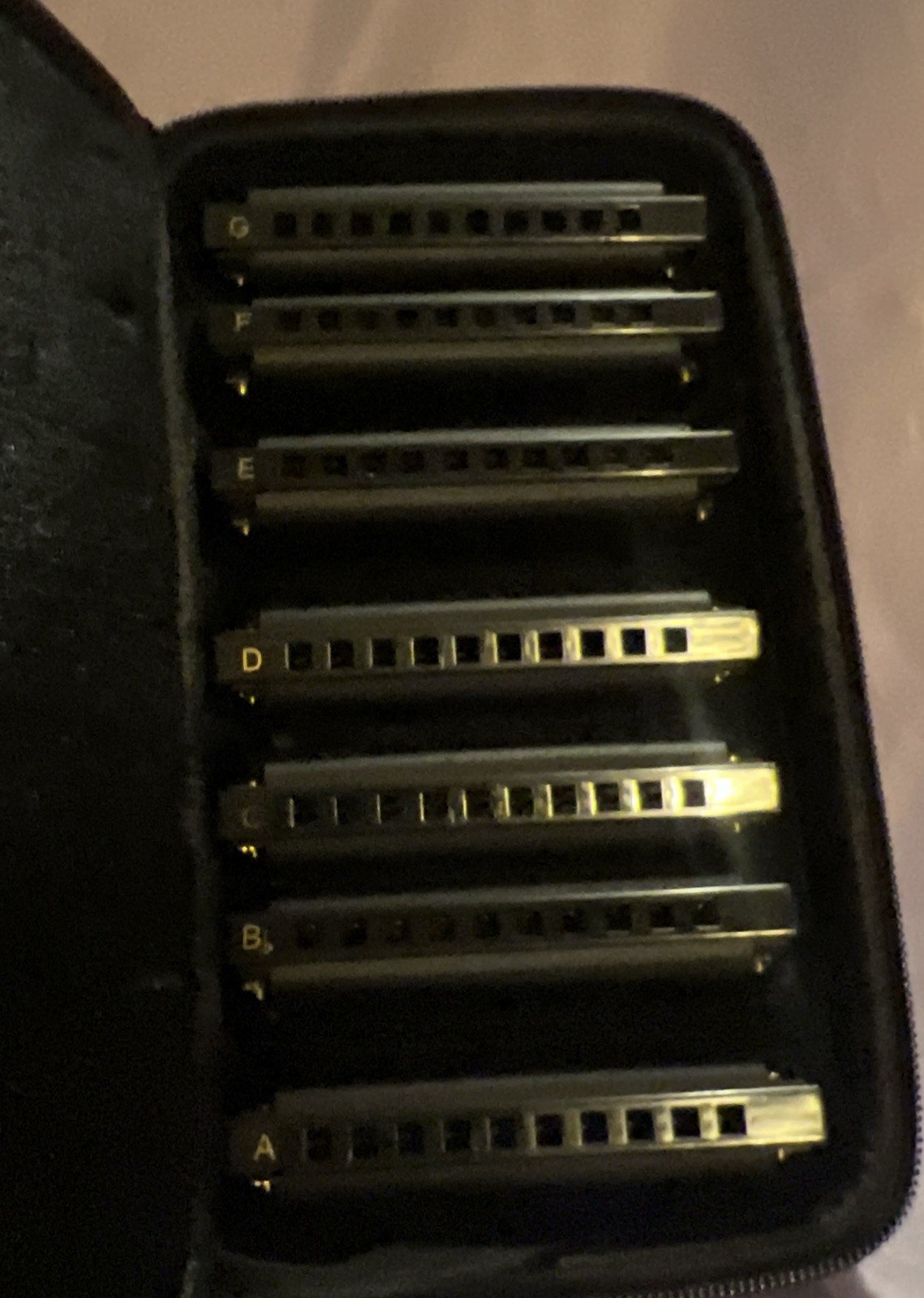 как выглядит HOHNER Blues Band 7 Key Harmonica Black Case Set A B Flat C D E F G фото