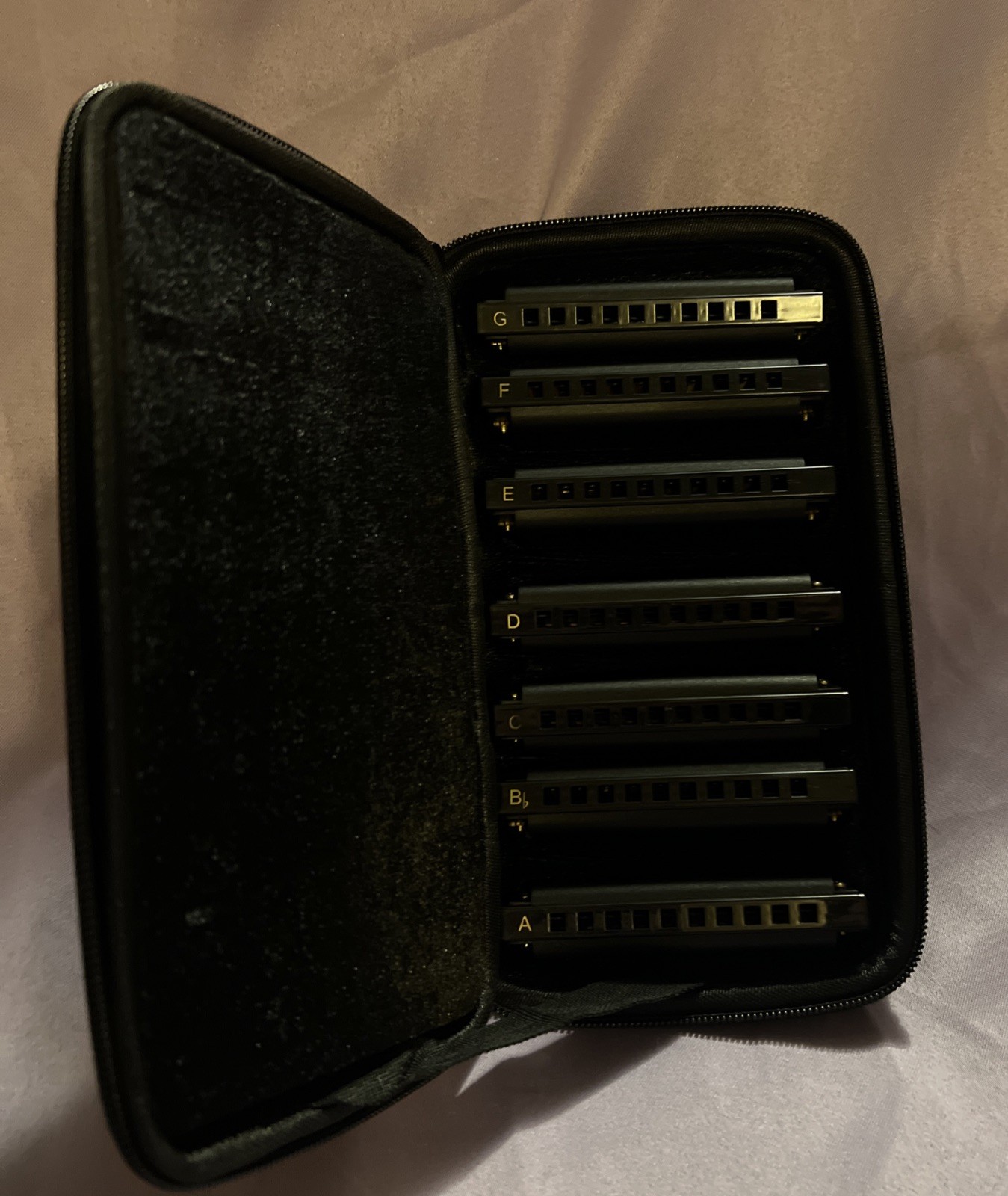 HOHNER Blues Band 7 Key Harmonica Black Case Set A B Flat C D E F G
