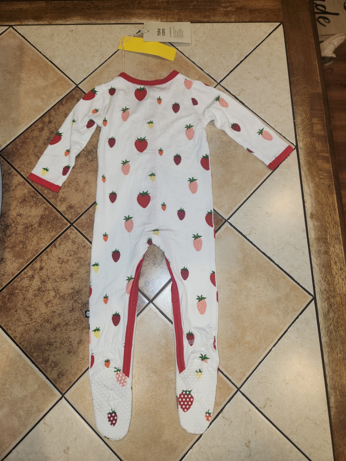 Kyte Baby Bamboo Romper Snap Sleeper Pajamas White Strawberries 6-12 Months