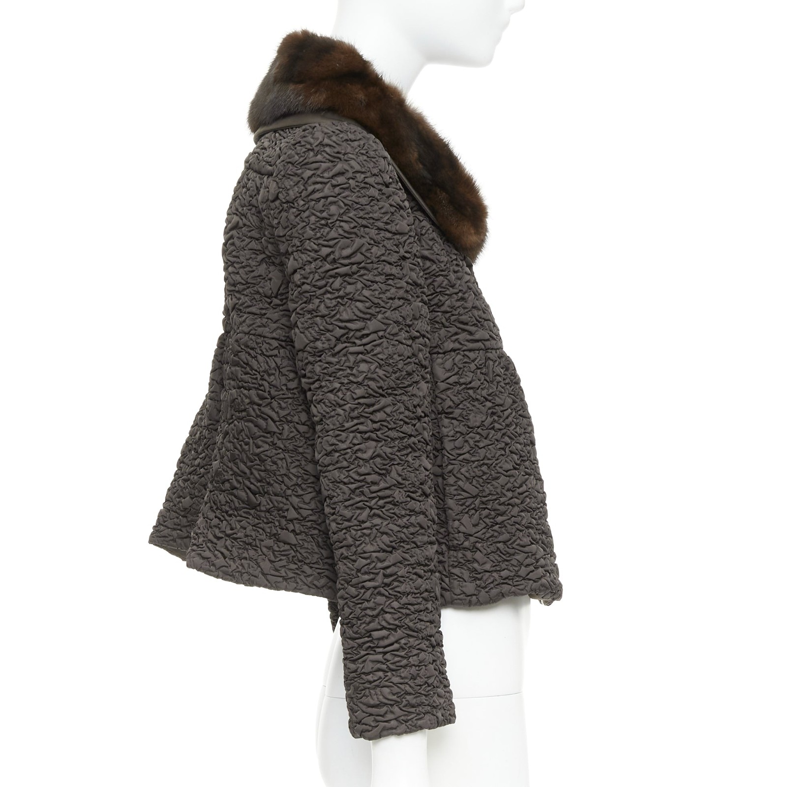 PRADA 2010 brown mink fur collar crinkled quilted puff sleeve jacket IT40 S