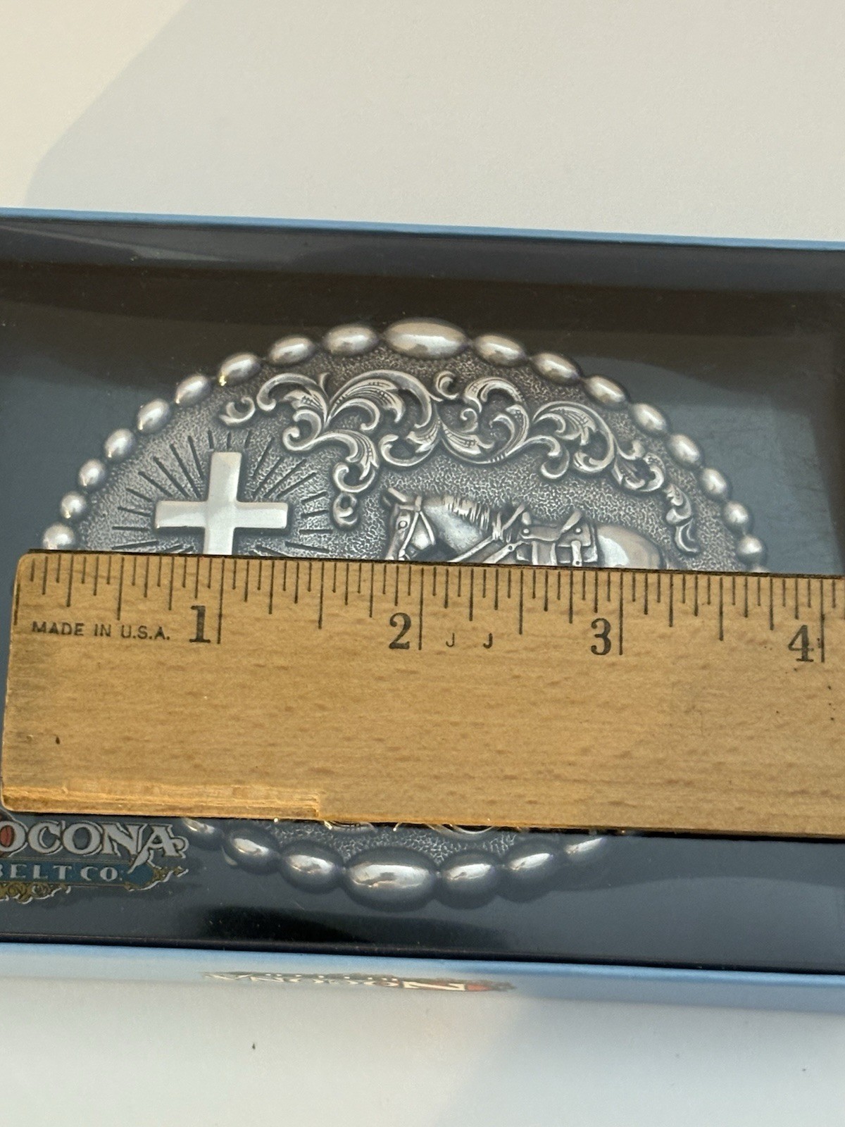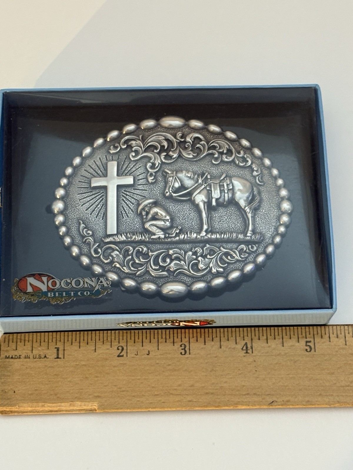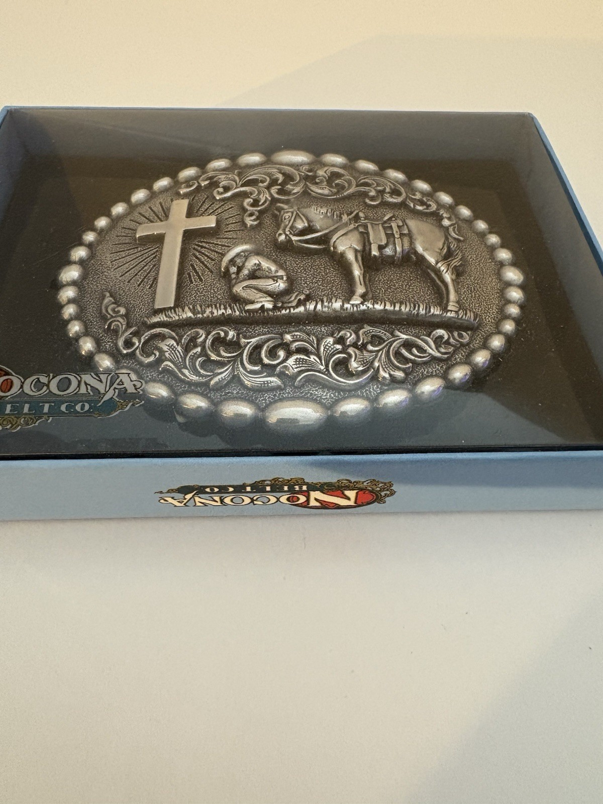 как выглядит Nocona Cowboy Praying at the Cross Belt Buckle M F Western 37056 фото