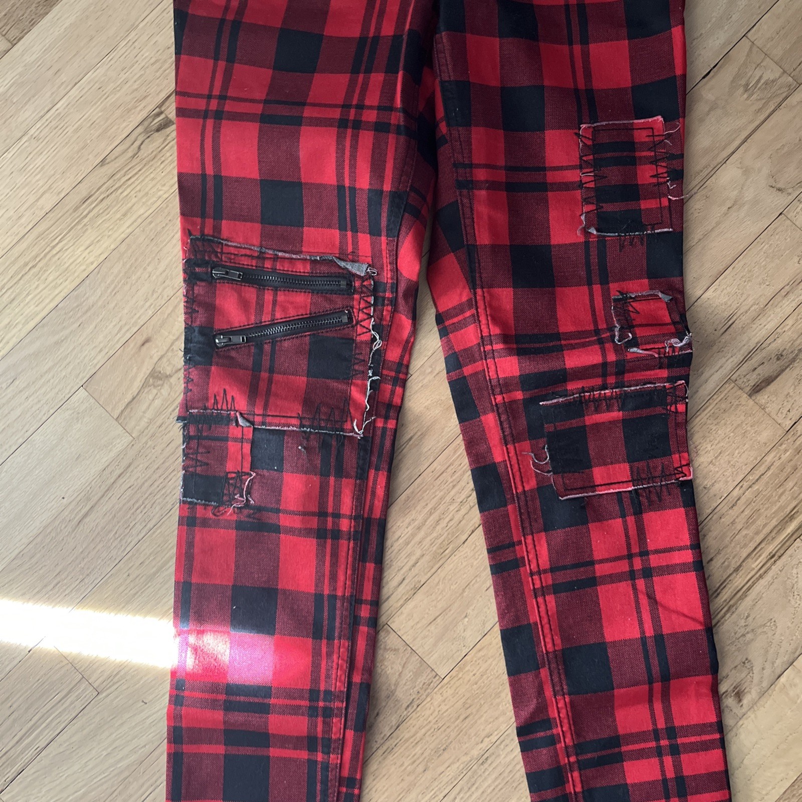как выглядит Hot Topic Blackheart Super Skinny Red Black Plaid Pants Size 5 Punk Alt Goth фото