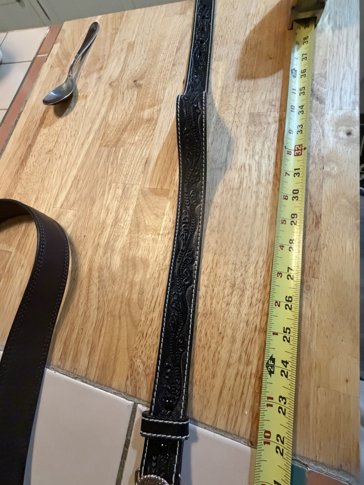 как выглядит Kids Black Leather hand Tool Belt With Horse Belt Buckle Size 20/22 фото