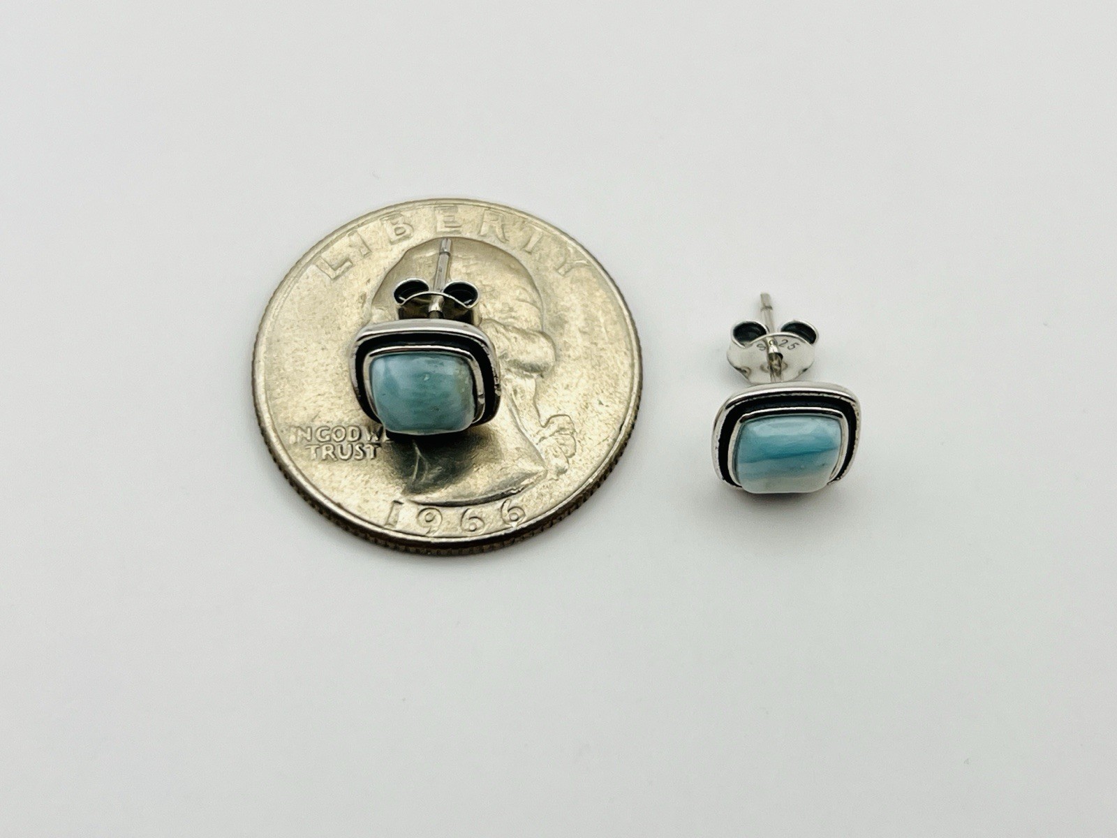 как выглядит Sterling Silver Natural Blue Larimar Square Stud Earrings фото