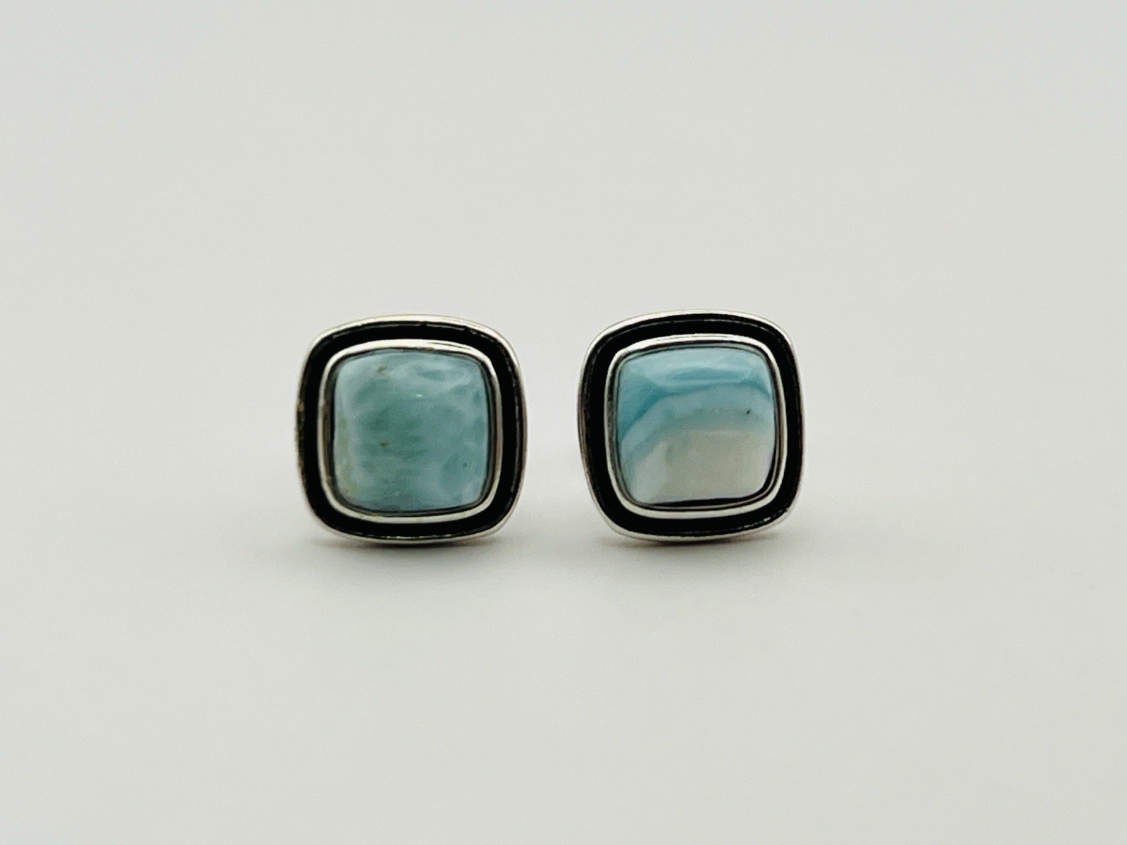 Sterling Silver Natural Blue Larimar Square Stud Earrings