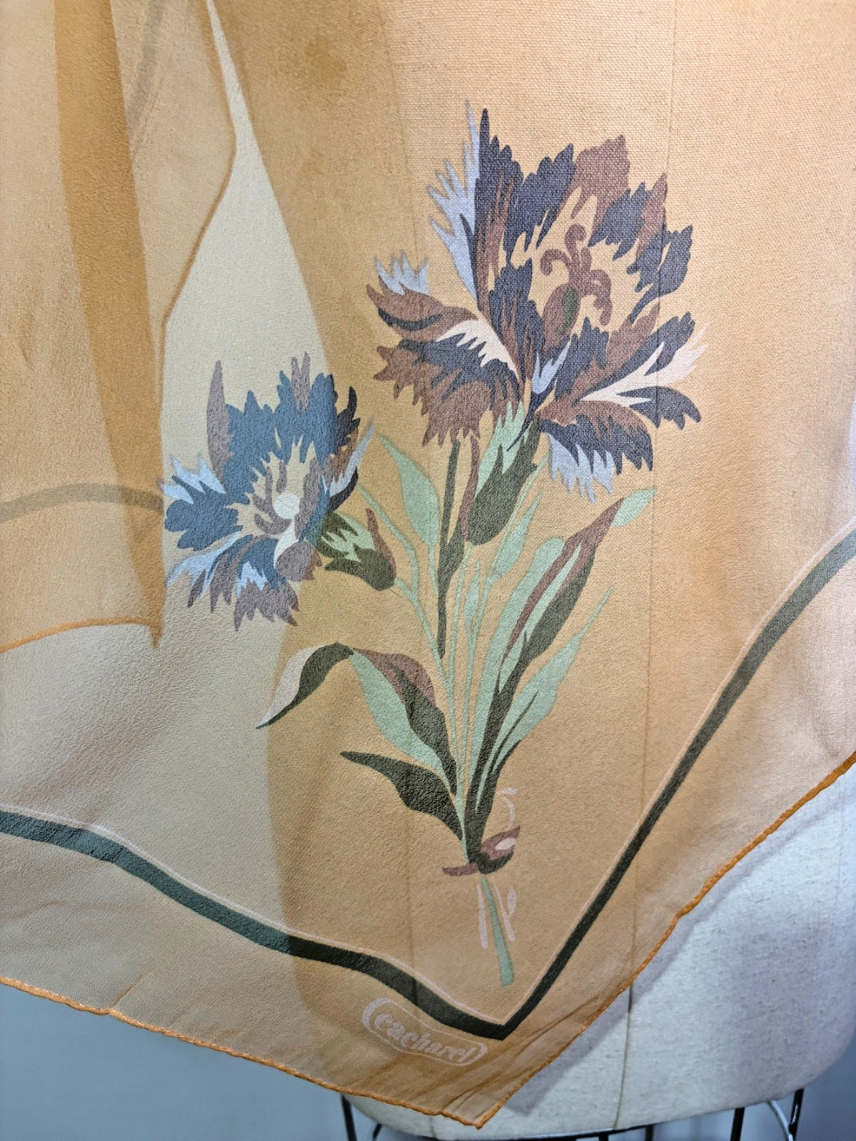 Casharel- Vintage Sheer Dark Orange w/ Bearded Iris Square Scarf- Signed