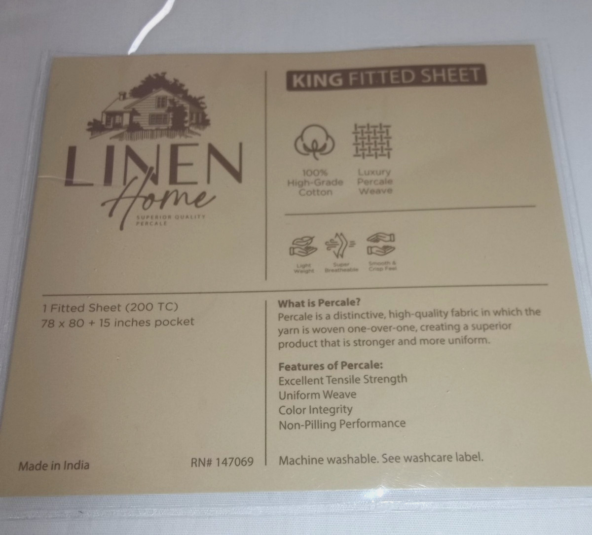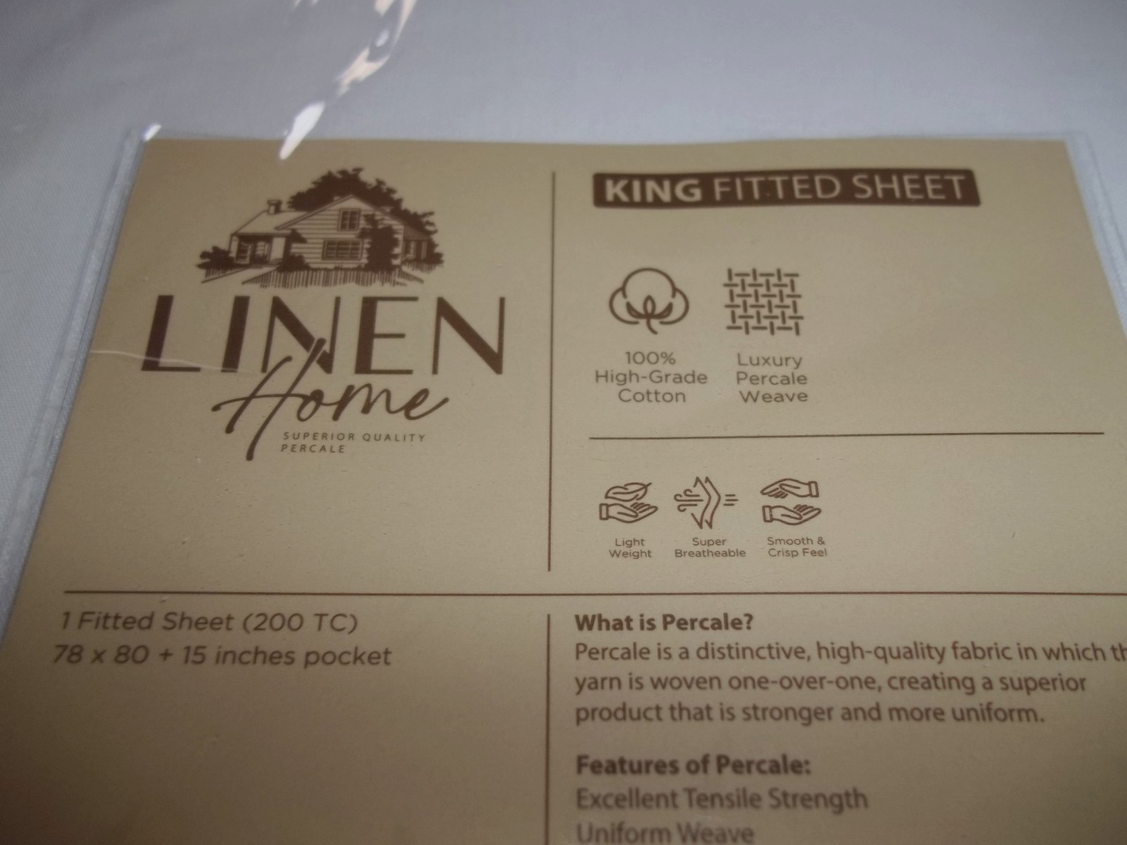 Linen Home 100 Cotton Percale Weave King Size Fitted Sheet White Deep Pockets