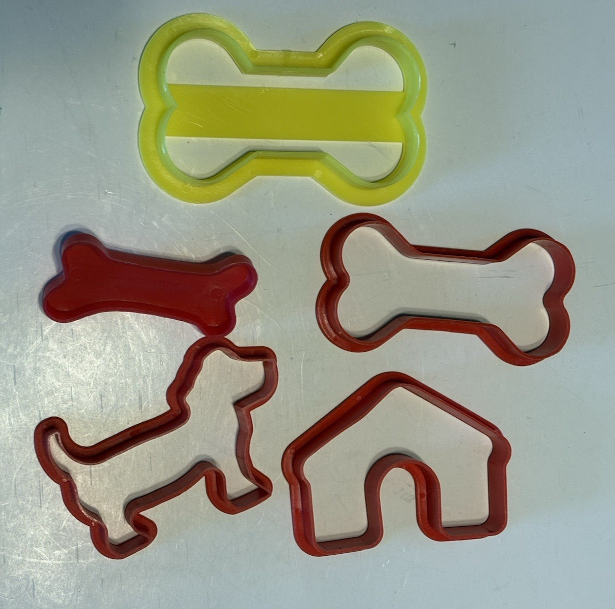 5 Plastic Cookie Cutters - 3 Bones, Dog Dog House Shapes
