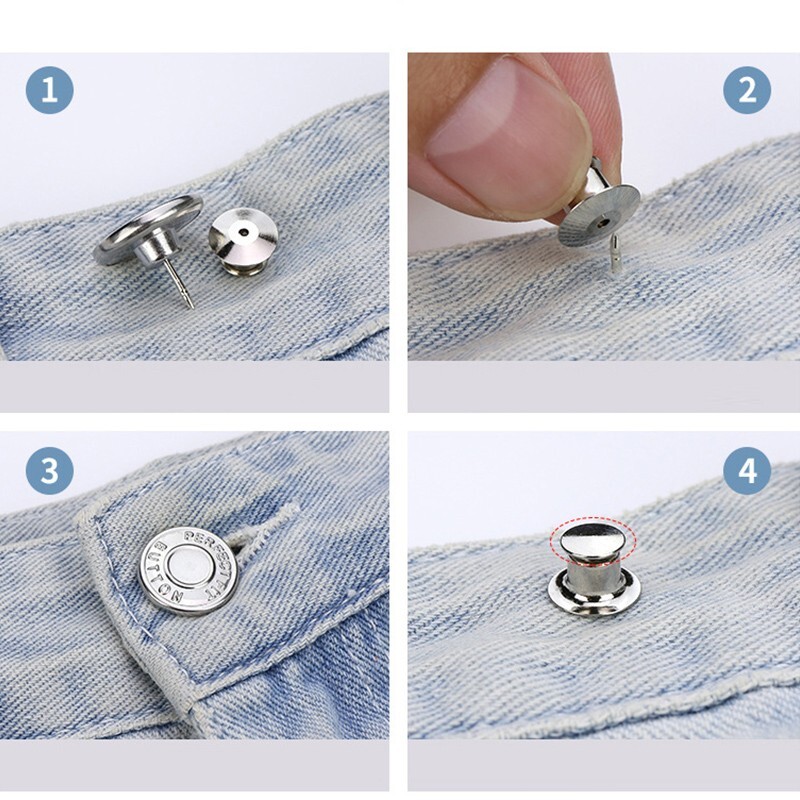 No-sew Instant Button for Jean, 6 Counts Round Detachable Metal Buttons, 17mm