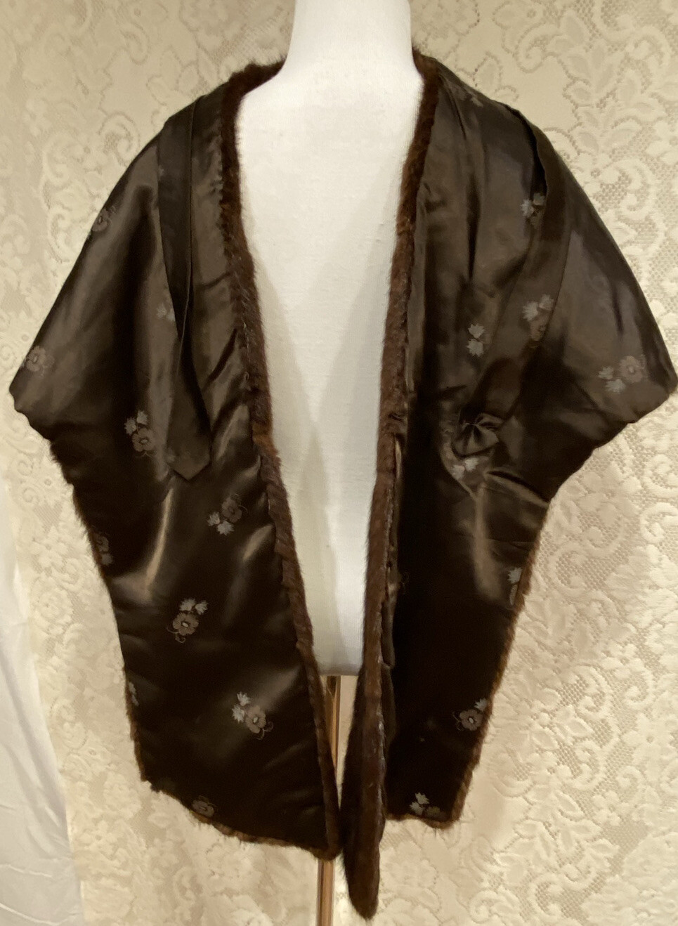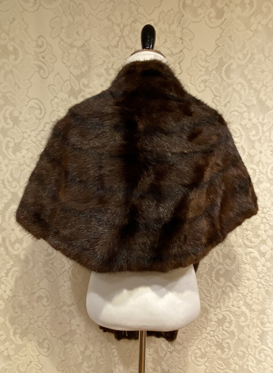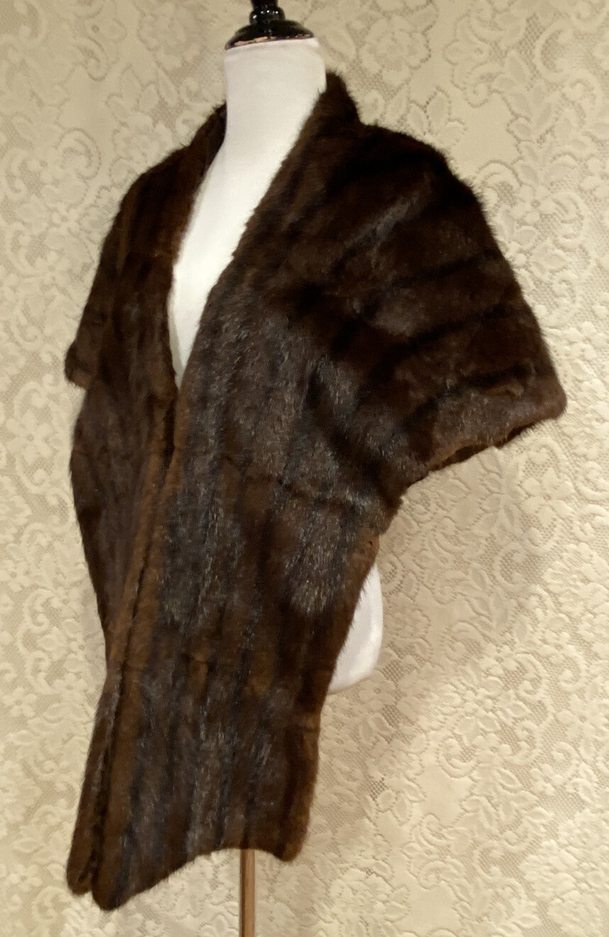 Beautiful Vintage Brown Mink Fur Stole Cape Wrap Shawl, Size S/M