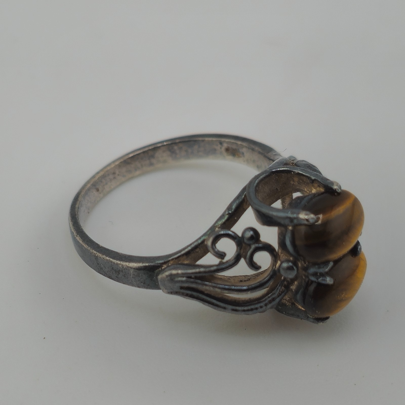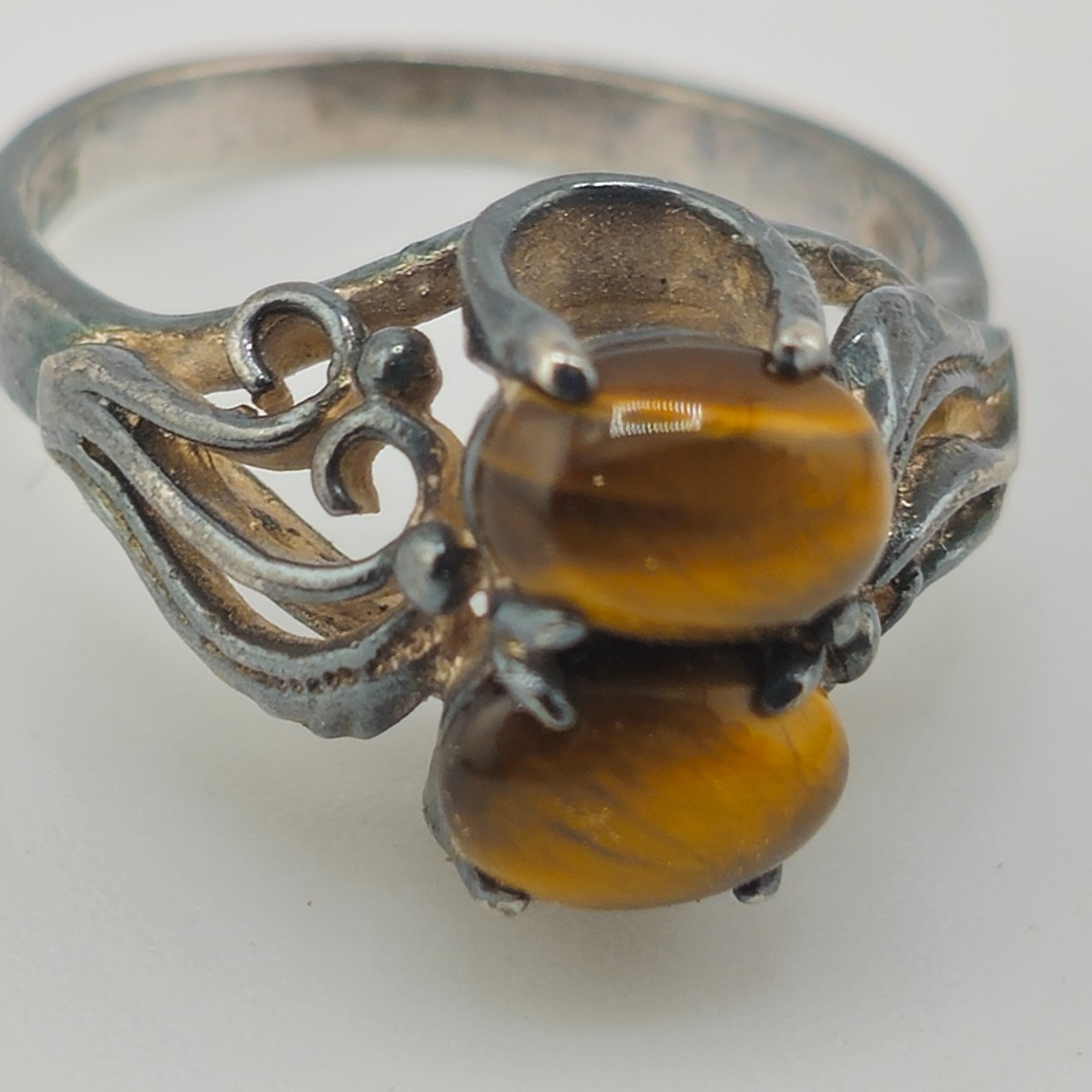 как выглядит Vintage Sterling Silver 925 Tiger Eye Double Stone Ring Size 6 фото