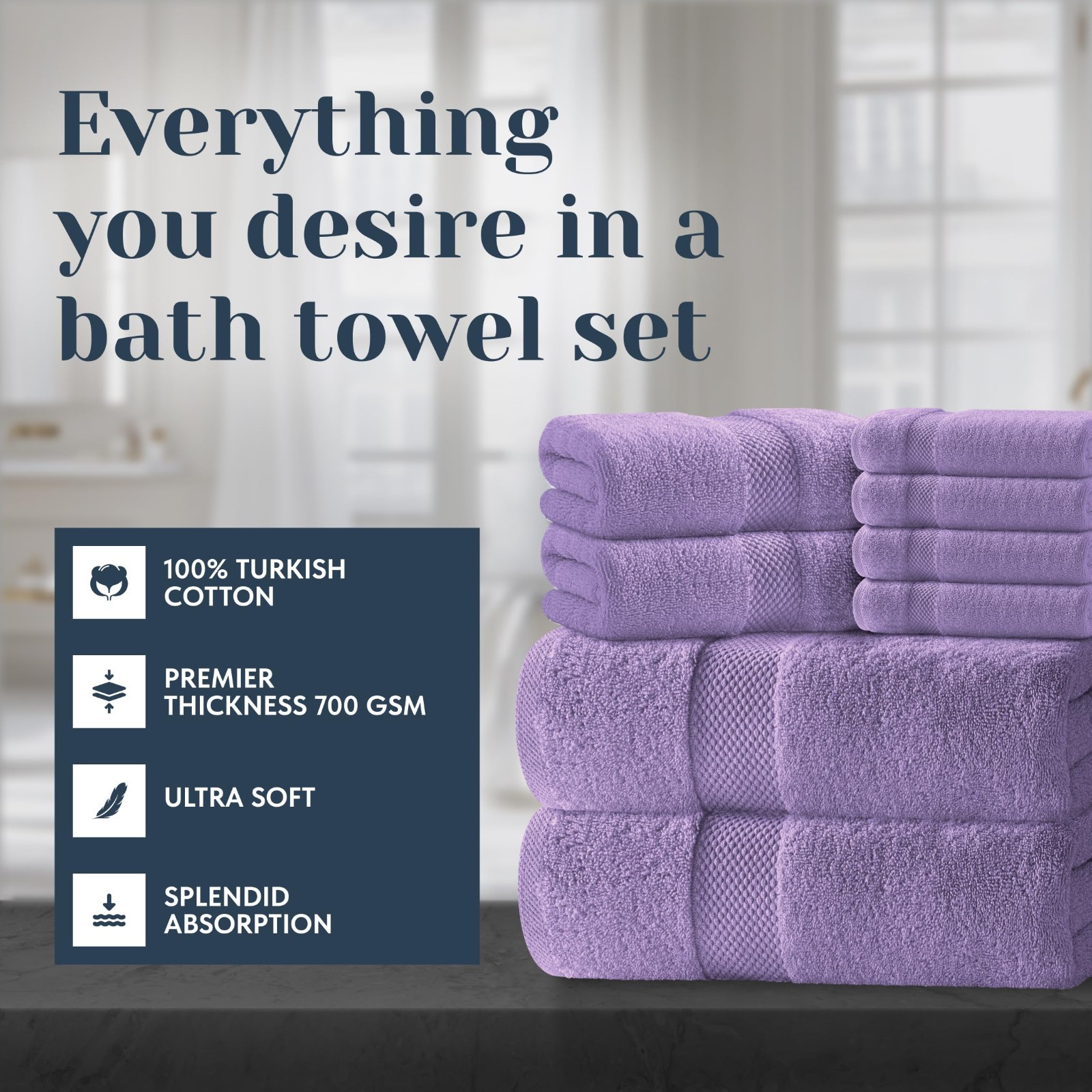 Luxury Cotton Bath Towel Set, 2/Bath 2/Hand 4/Wash - 8 Piece, Lavender