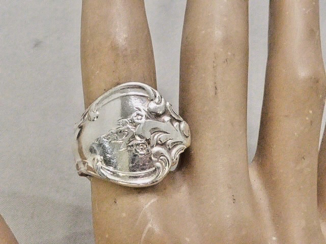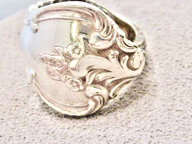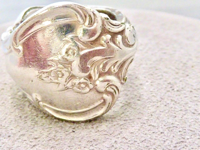 VINTAGE SIGNED LAID SILVER PLATE SPOON RING SIZE 7.2.5 SILVER PLATE
