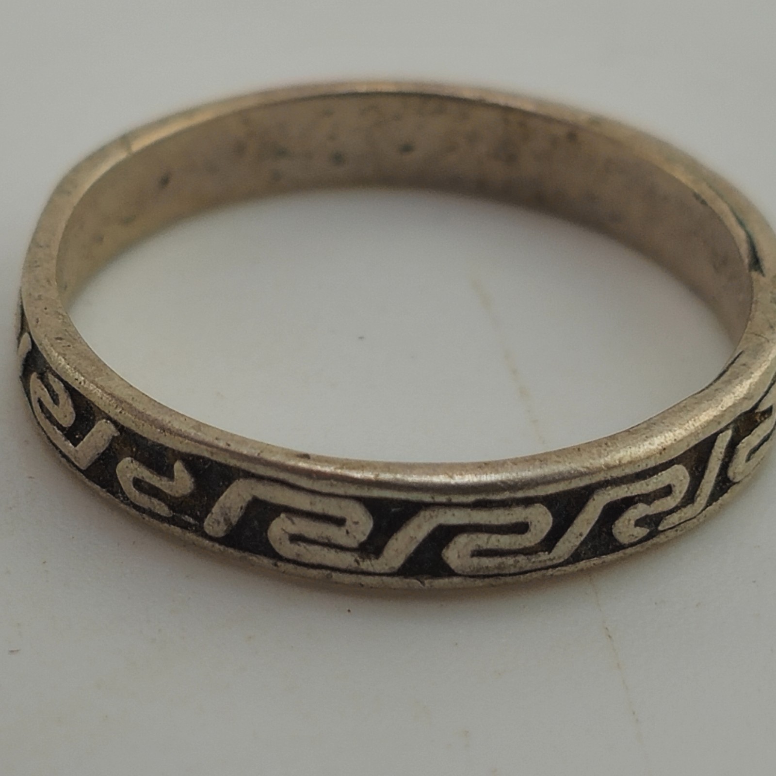 как выглядит 925 Sterling Silver Band Ring Size 9.75 Greek Key Scroll Pattern Vintage фото