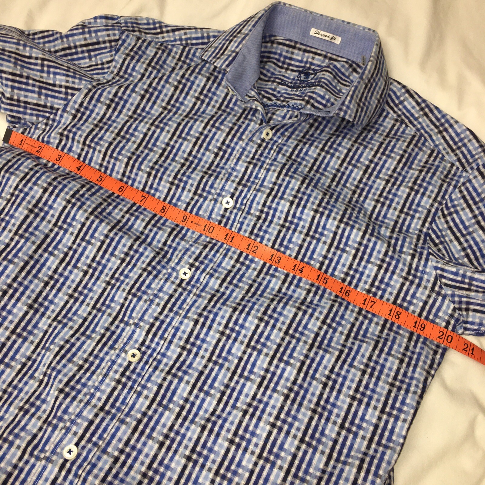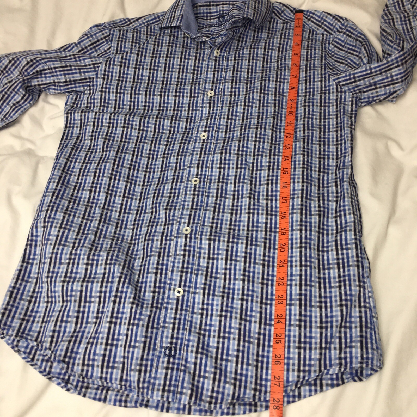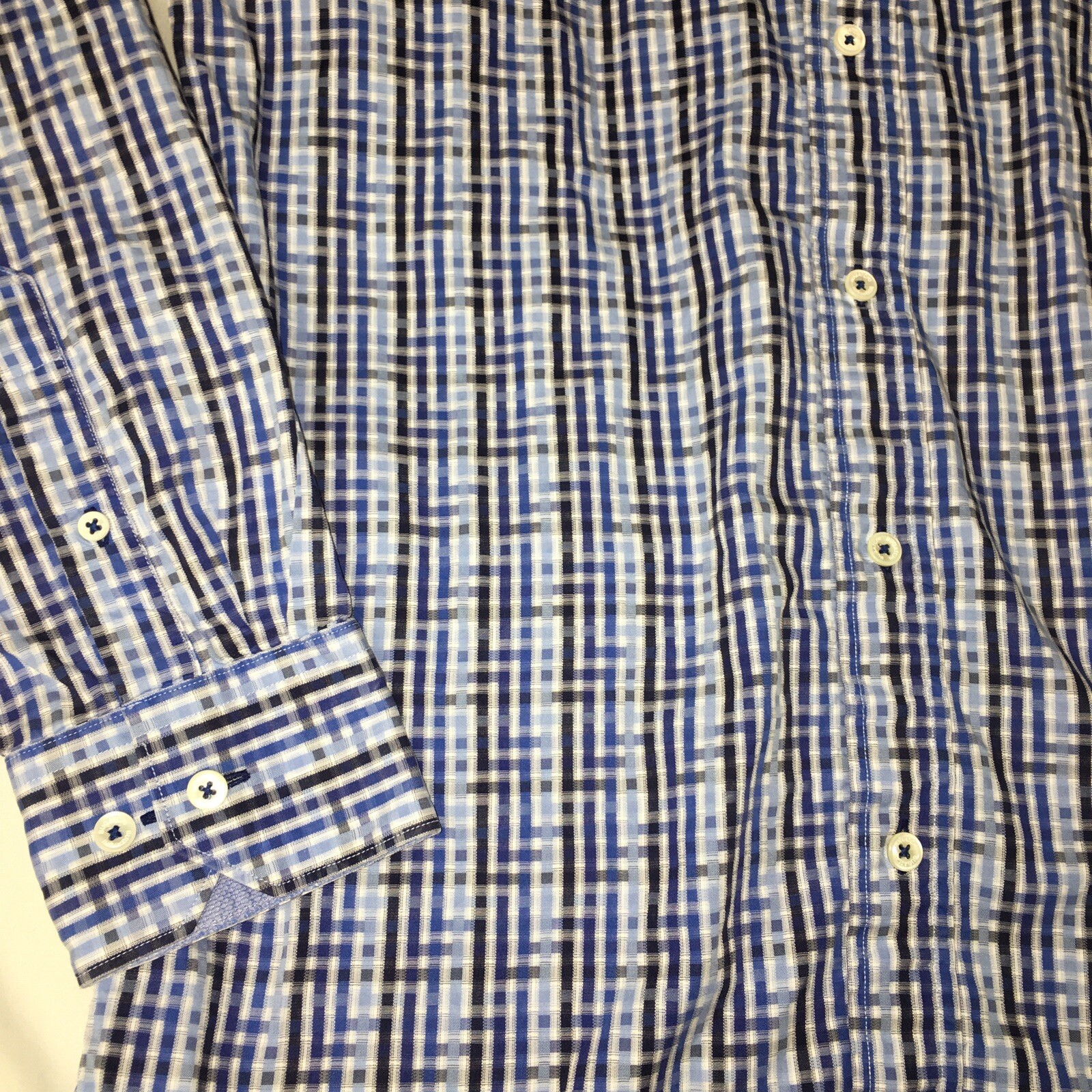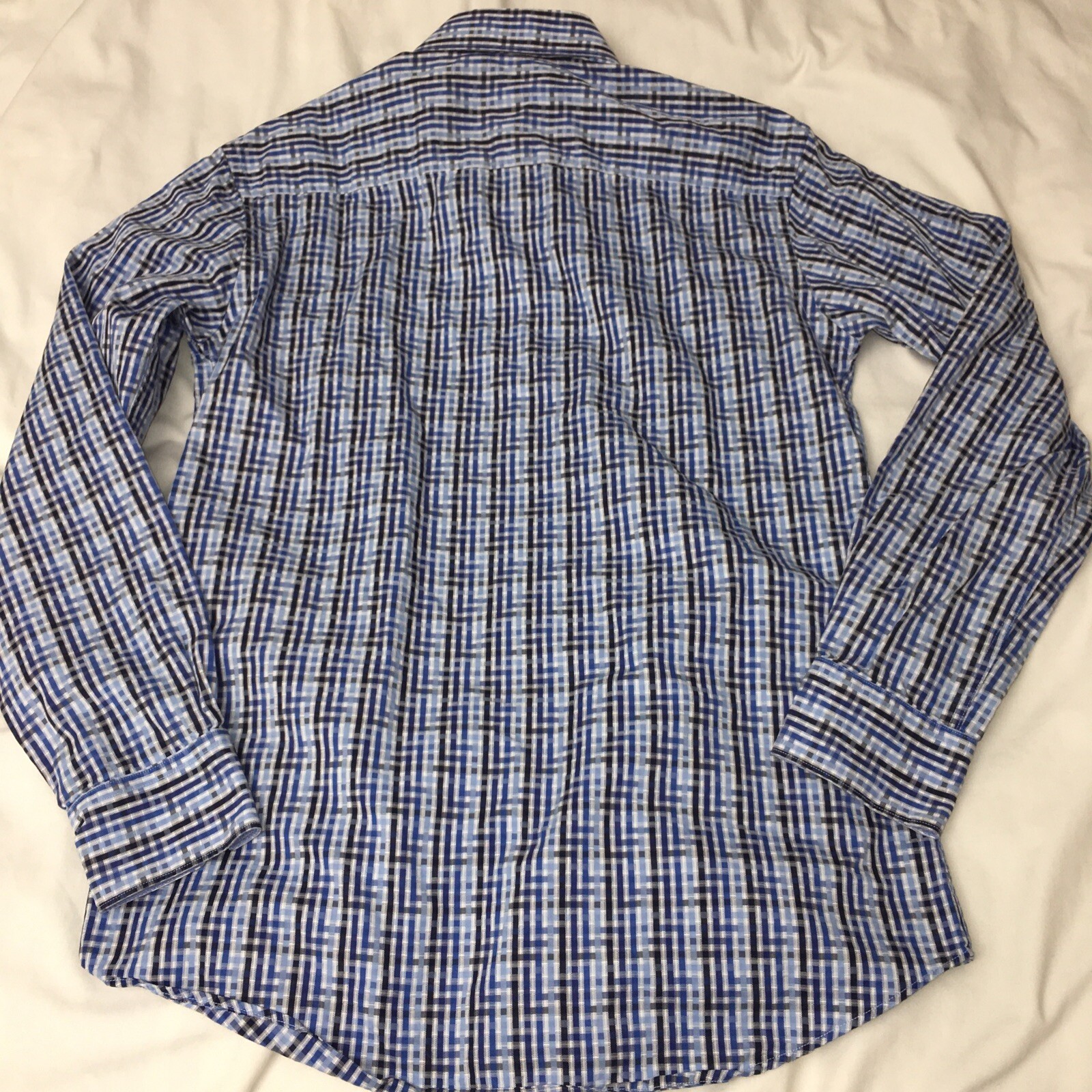 как выглядит Bugatchi Uomo Blue Long Sleeve Flip Cuff Button Down Shirt Size Small фото
