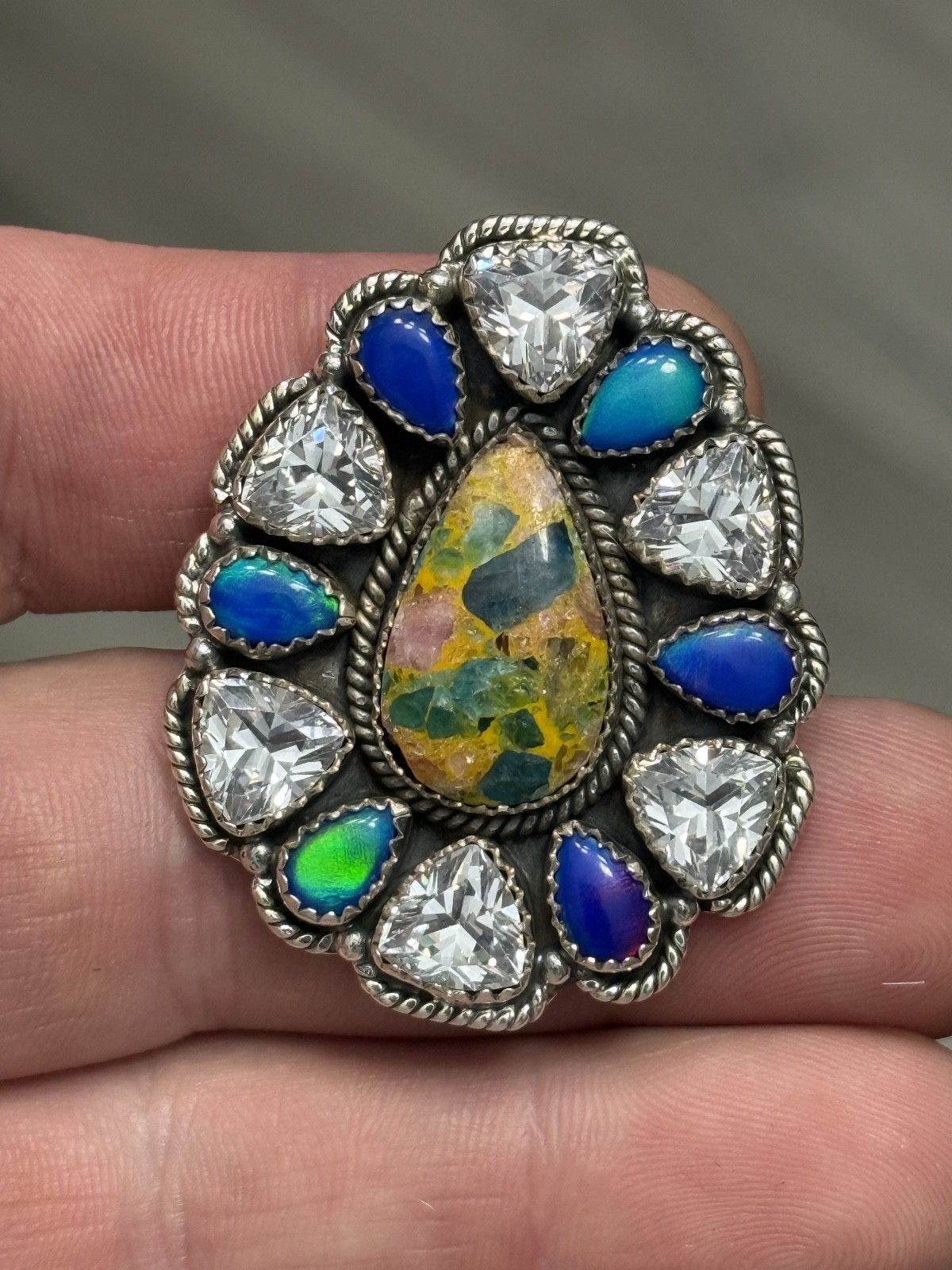 Secondary Stone: Cubic Zirconia, White Opal, Red Opal