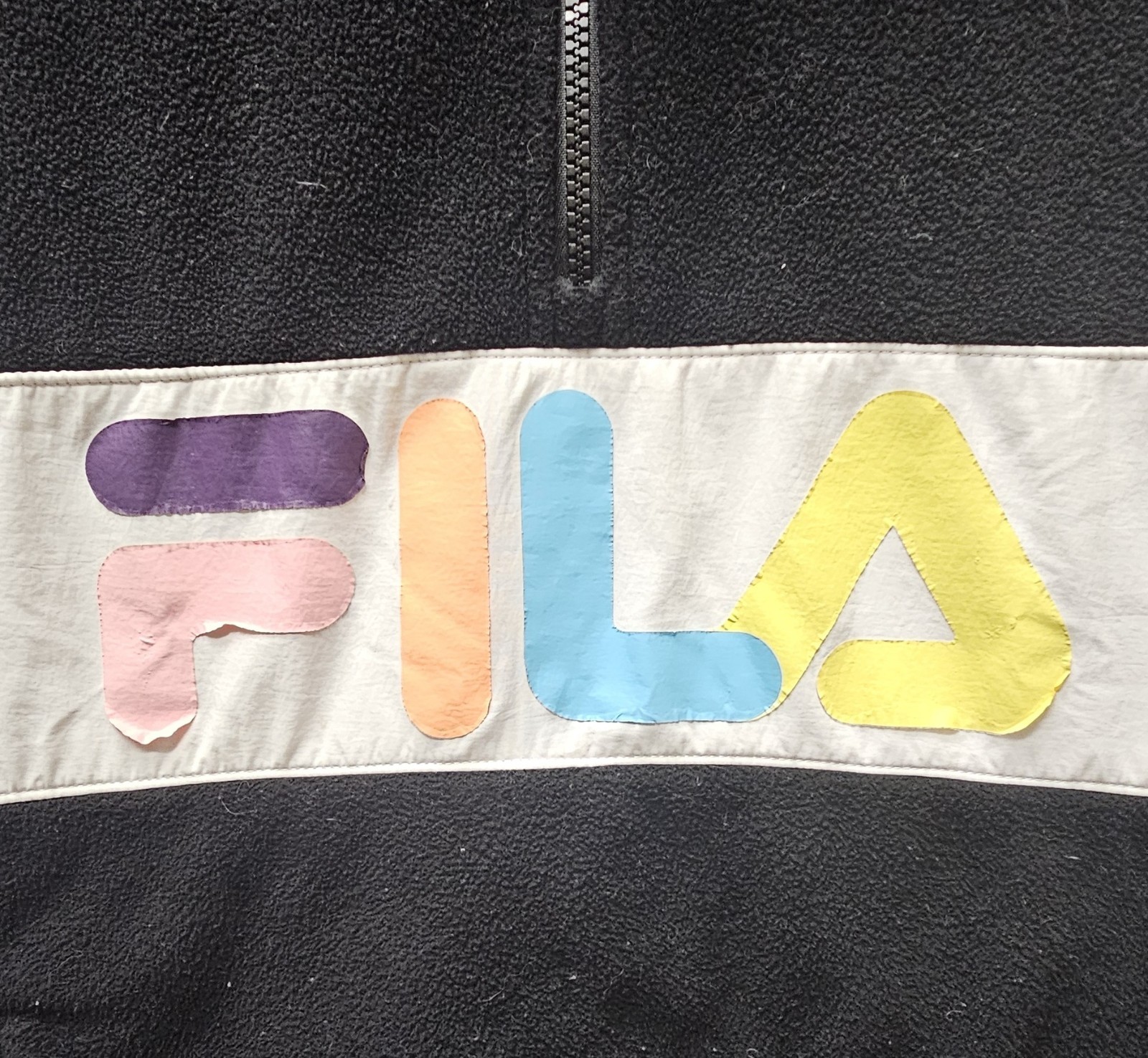 как выглядит FILA Black Logo Spell Out Polyester Fleece 1/4 Zip Retro Pullover Women