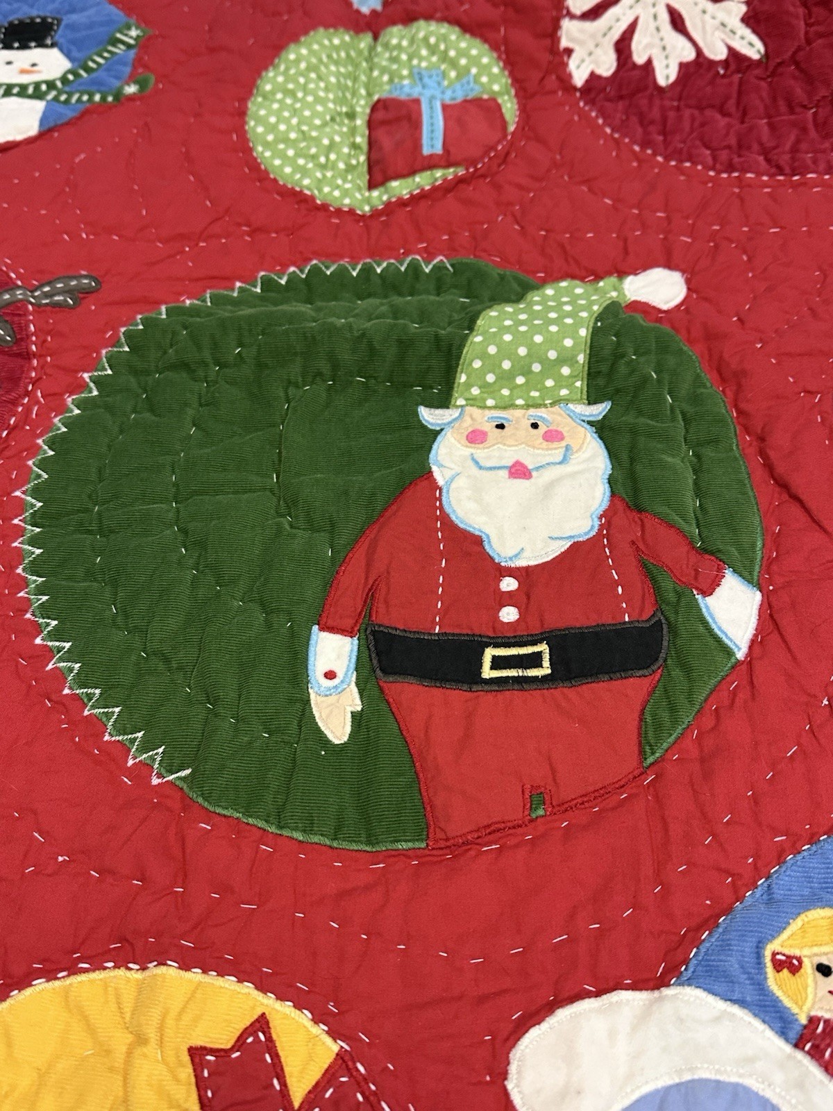 как выглядит Pottery Barn Kids Christmas Heritage Santa Toddler/Crib Quilt Christmas 36 X 50 фото