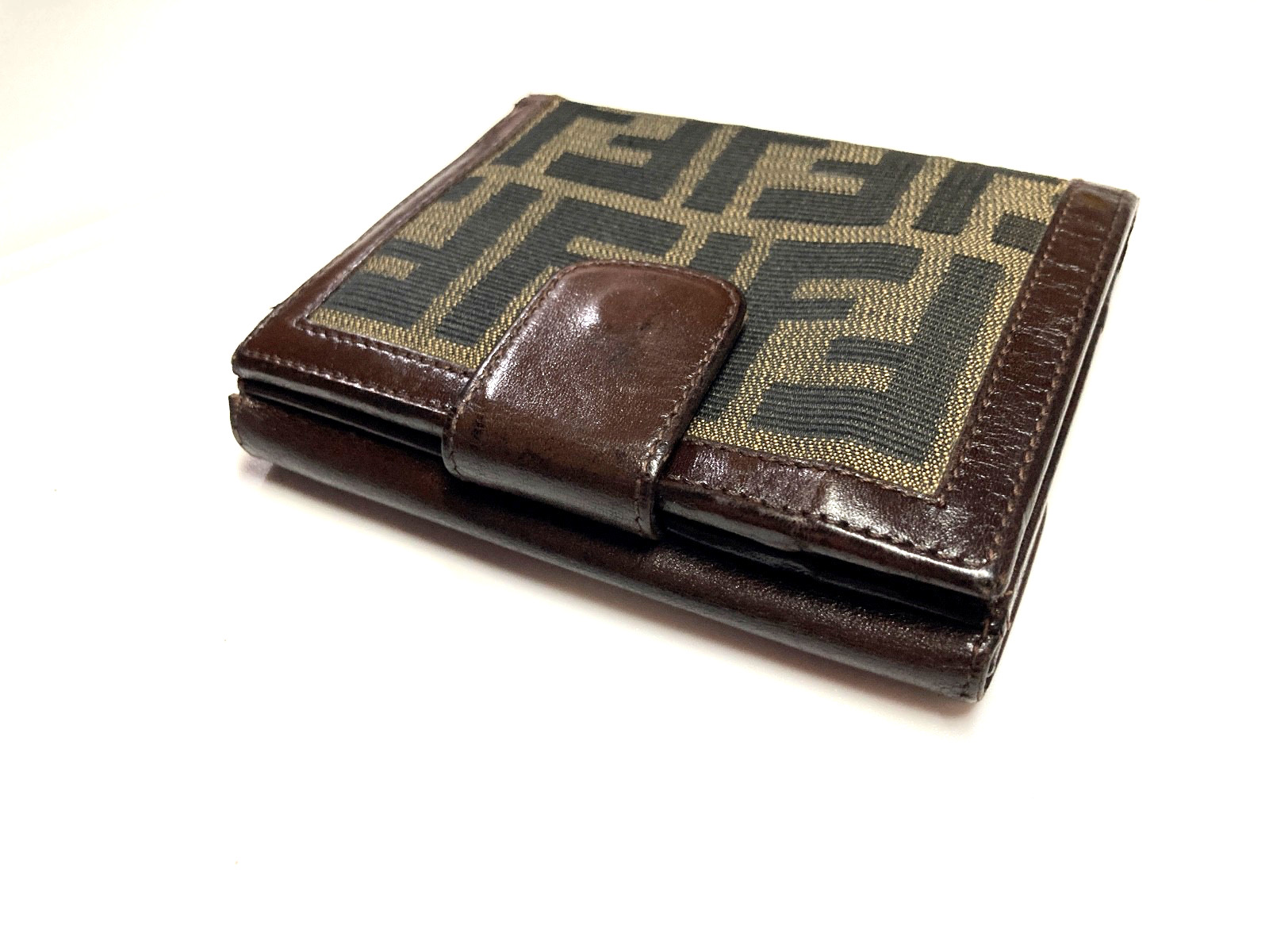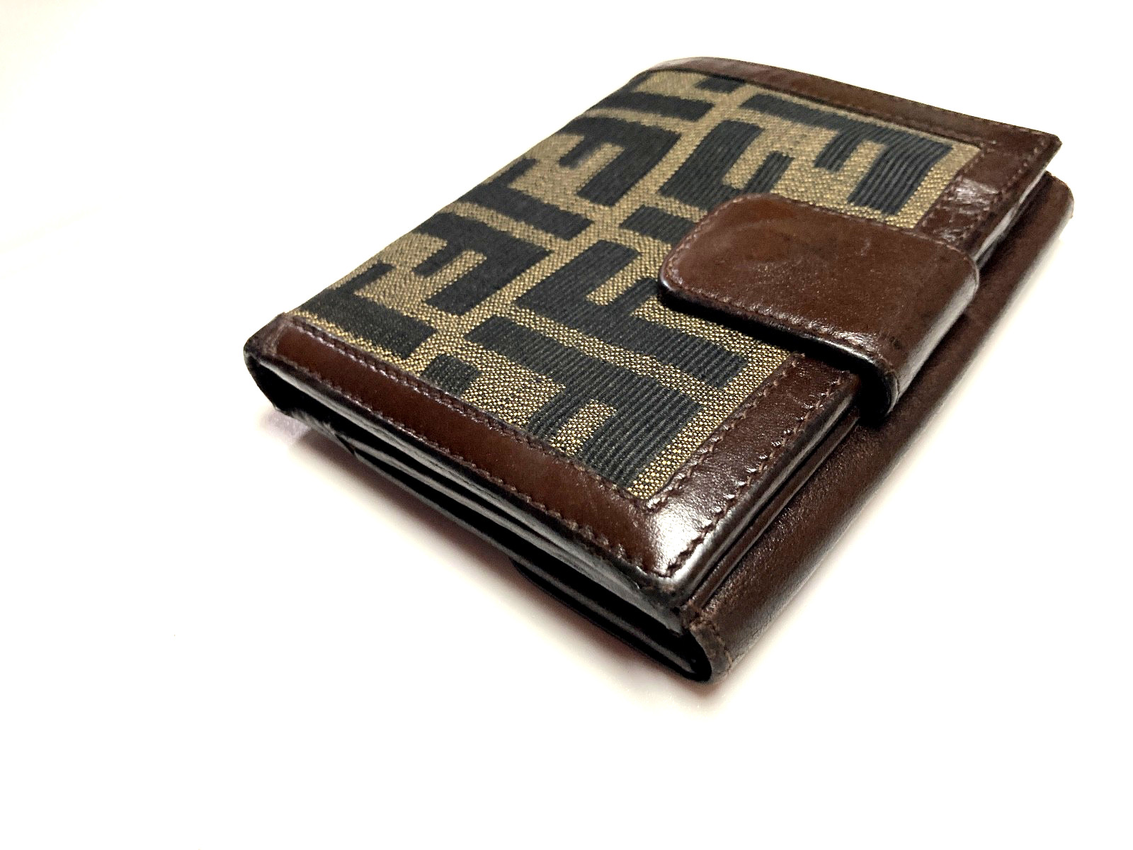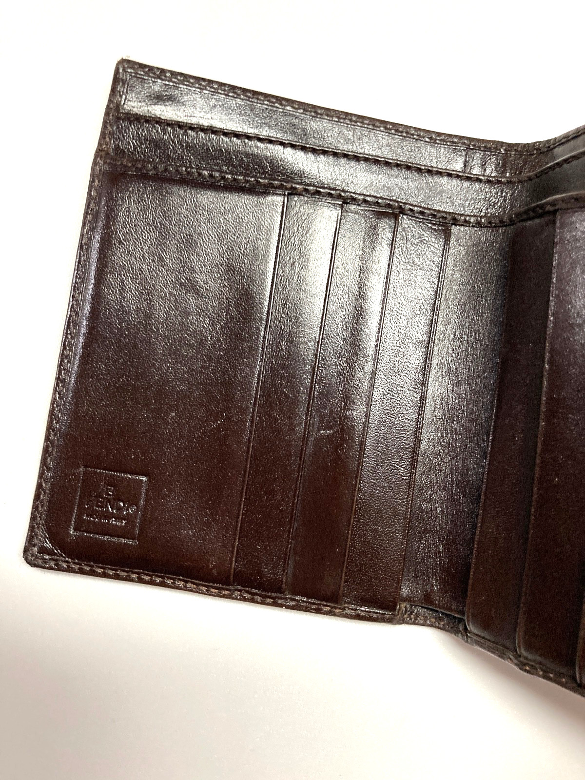 FENDI VINTAGE ZUCCA FF CANVAS LEATHER WALLET BIFOLD COIN CARD ITALY BROWN