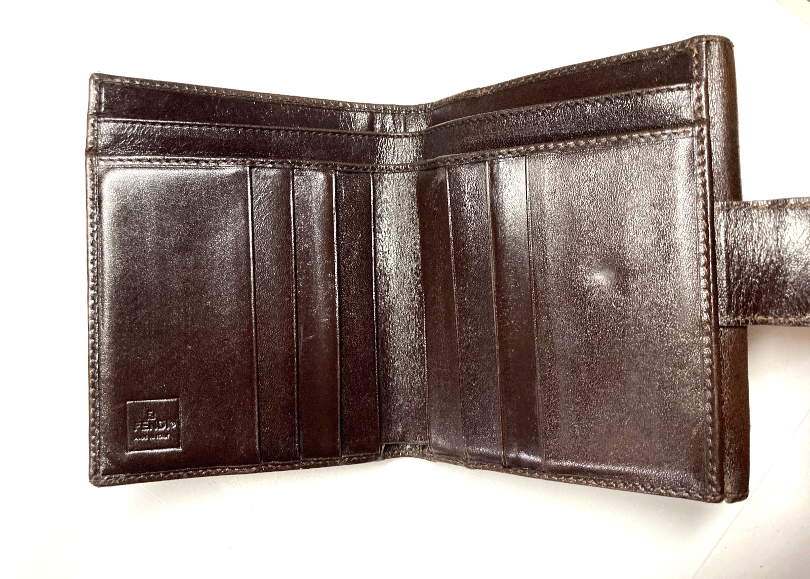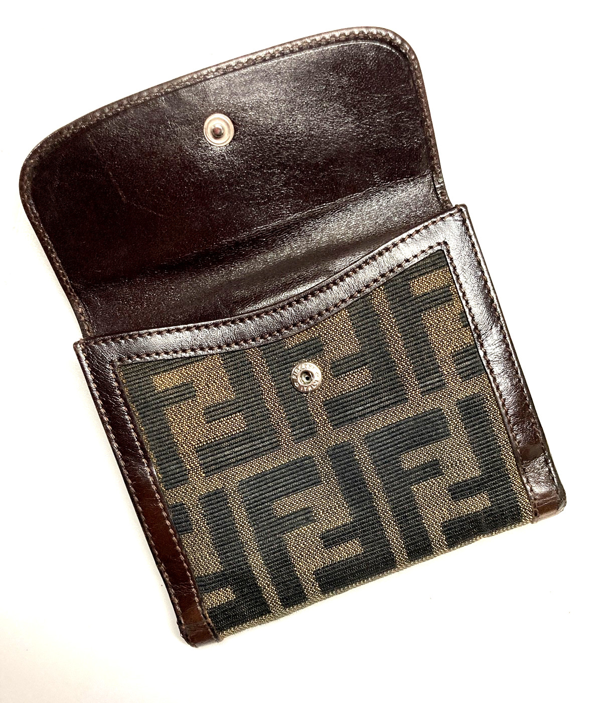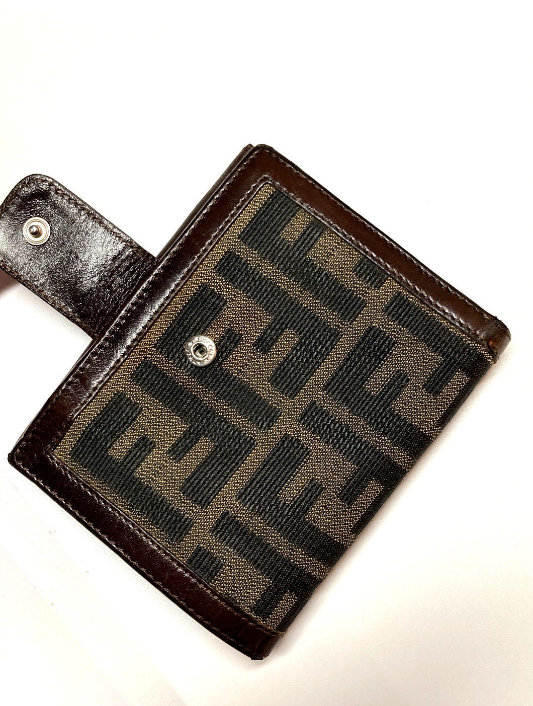 FENDI VINTAGE ZUCCA FF CANVAS LEATHER WALLET BIFOLD COIN CARD ITALY BROWN