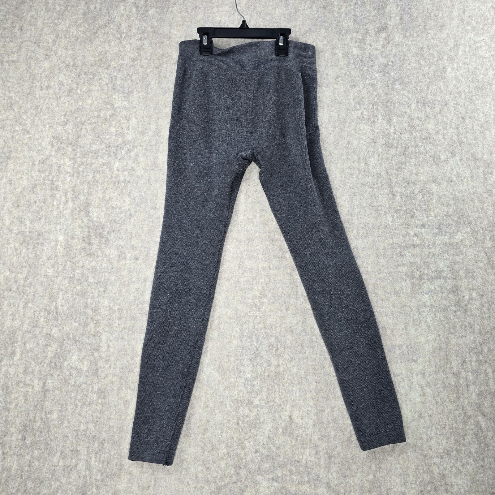 Grey Womens Knit Leggings Elastic Waist Fitted Heathered Full-Length Polyester