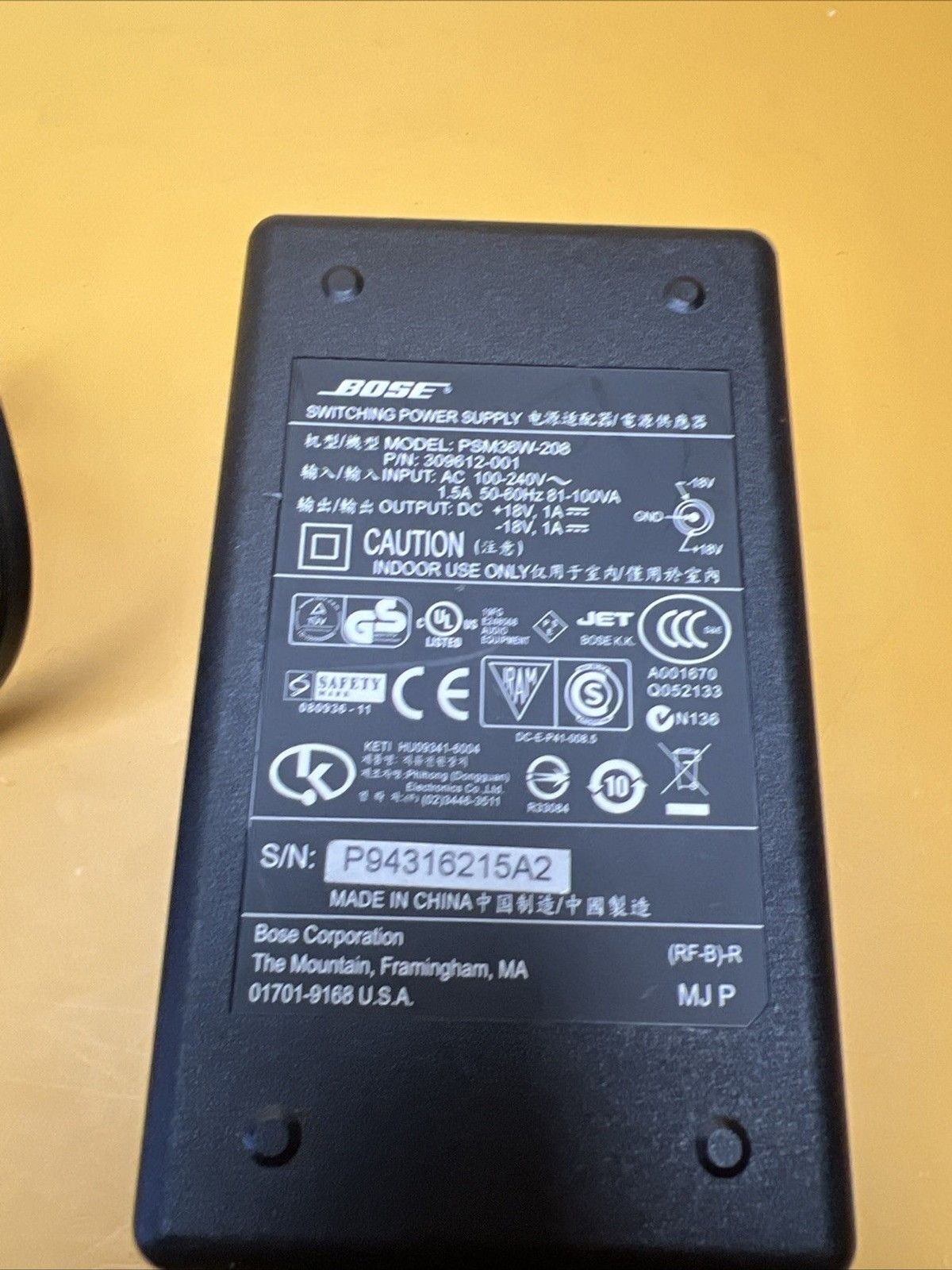Genuine BOSE SoundDock Switching Power Supply AC Adapter PSM36W-208 Tested