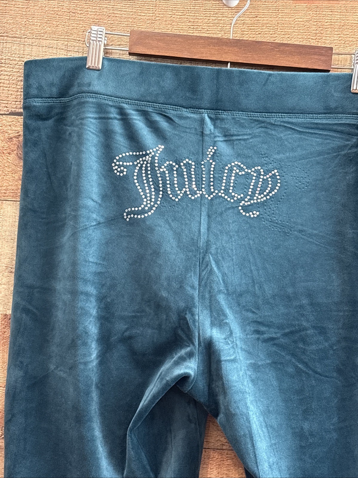 Juicy Couture Teal Velour Joggers Bling Rhinestone Size XL
