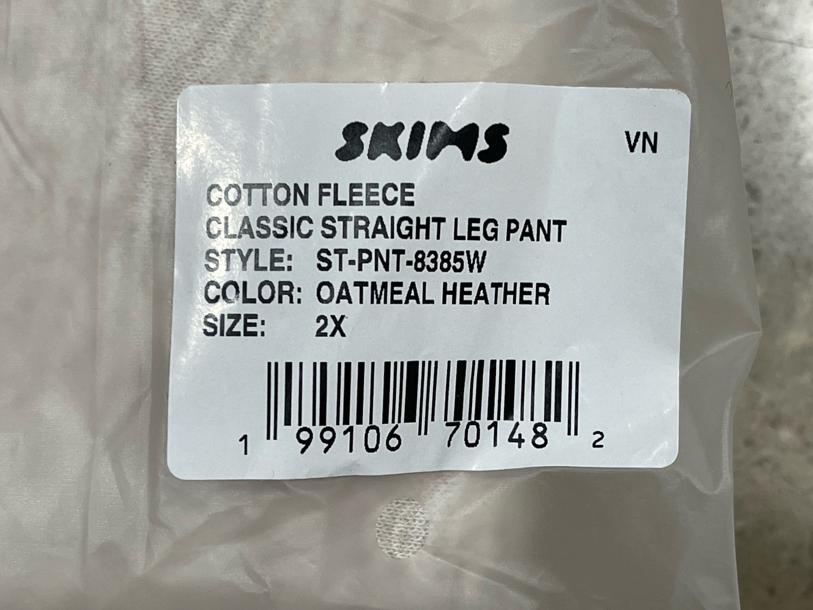 Skims Cotton Fleece Classic Straight Leg Pant in Oatmeal Heather Size 2 X NWT