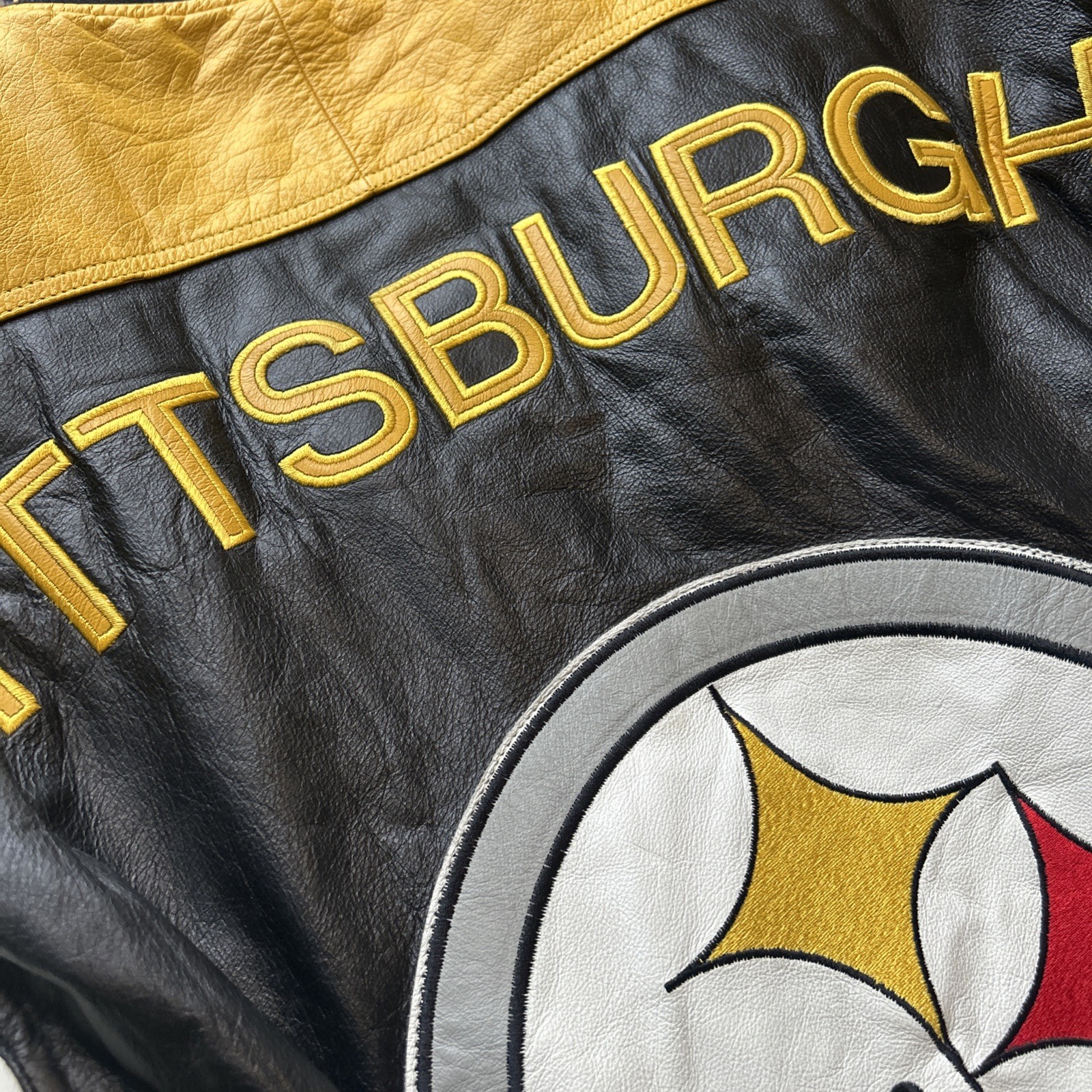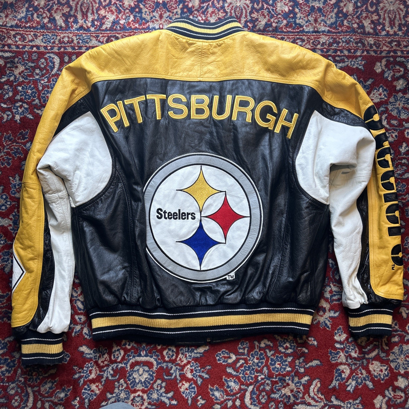 Pittsburgh Steelers NFL Leather Bomber Jacket Mens L G-III Carl Banks Vintage