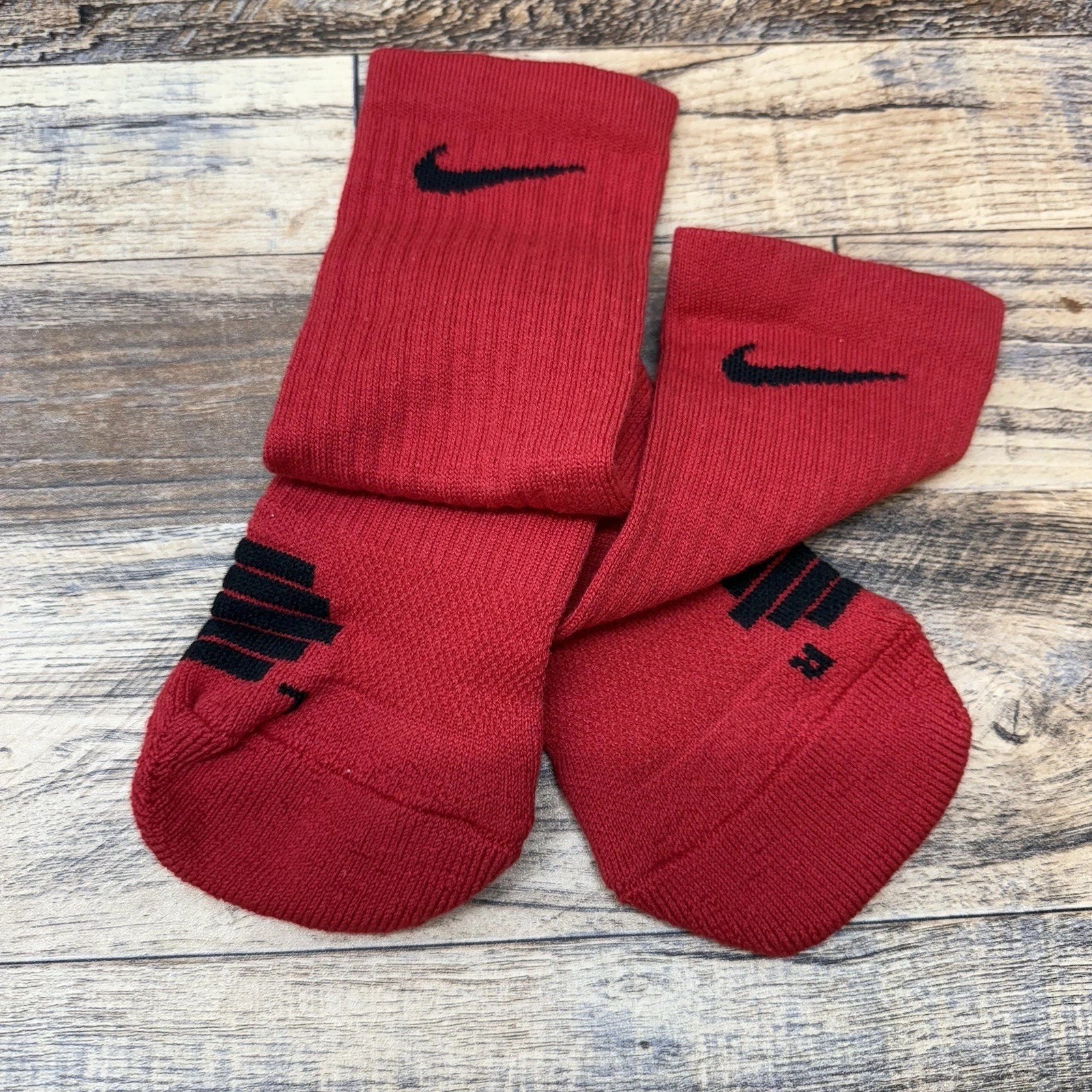 как выглядит New Original Nike Elite Socks Crew Size Small Red/White Classic Basketball фото