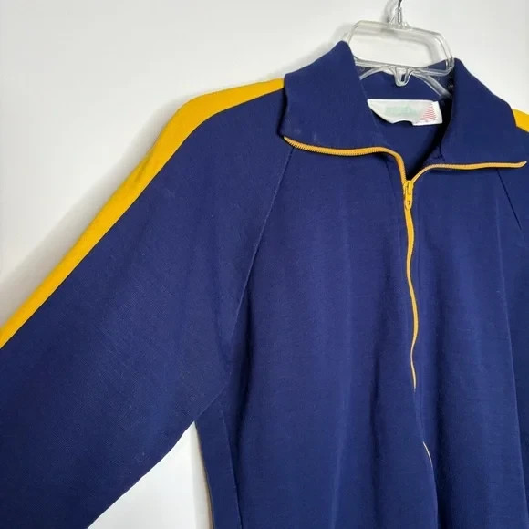 как выглядит Vintage Court Casuals Full Zip Track Jacket Navy Blue and Yellow XS-Small фото
