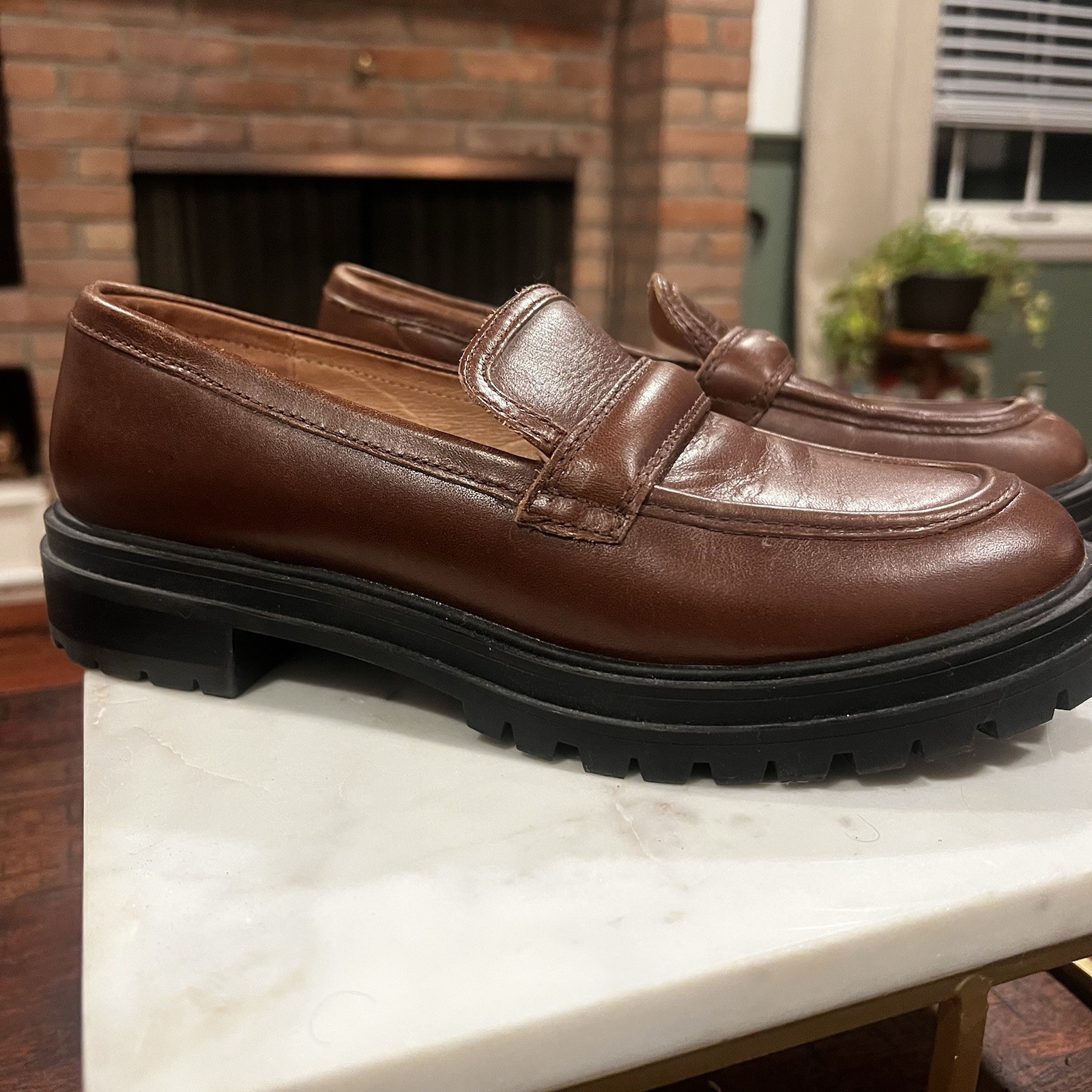 Madewell Brown Leather Penny Loafers Lug Sole Womens Size 8 Chunky Gorp Core EUC