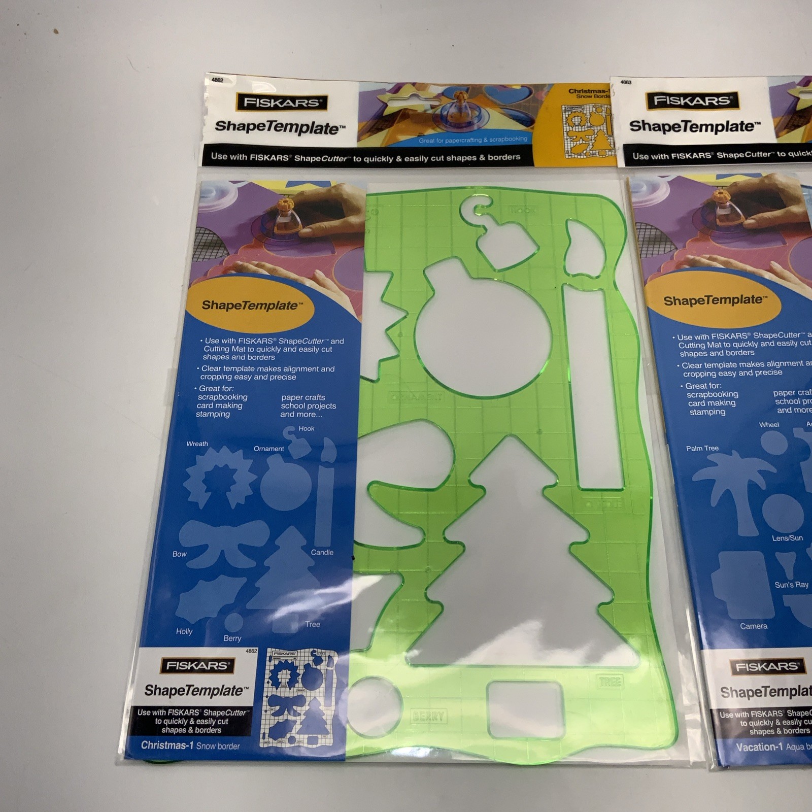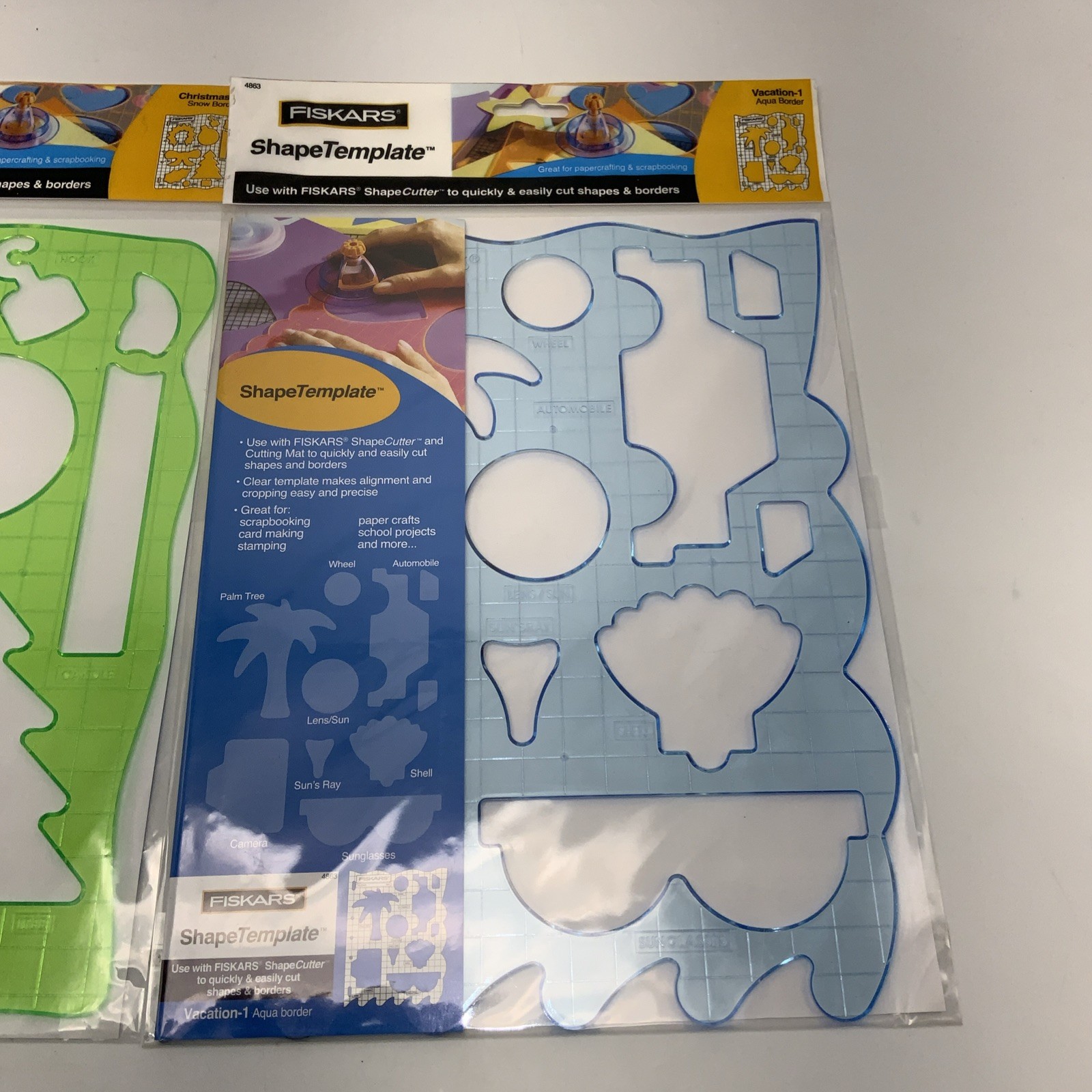 как выглядит Fiskars Shape Template Lot Of 2 Vacation Aqua Boarder, Christmas Snow Boarder фото