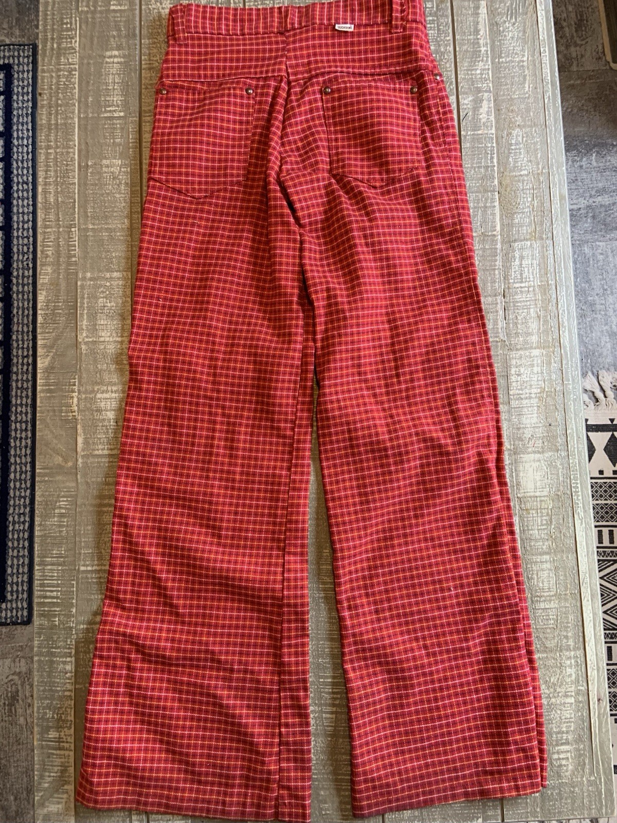 Vtg 1970 s Lemon Frog For Teens Pants Disco Red Plaid 25x31 Sears Roebuck