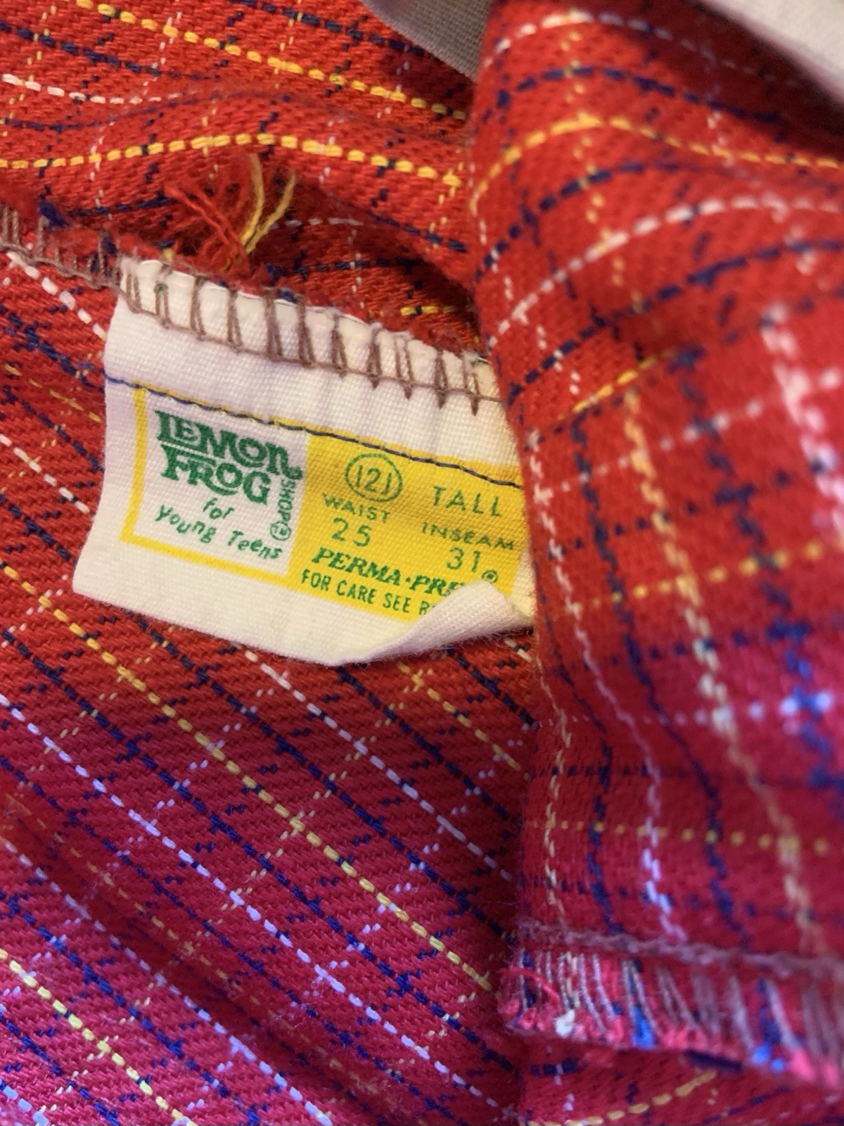 как выглядит Vtg 1970 s Lemon Frog For Teens Pants Disco Red Plaid 25x31 Sears Roebuck фото