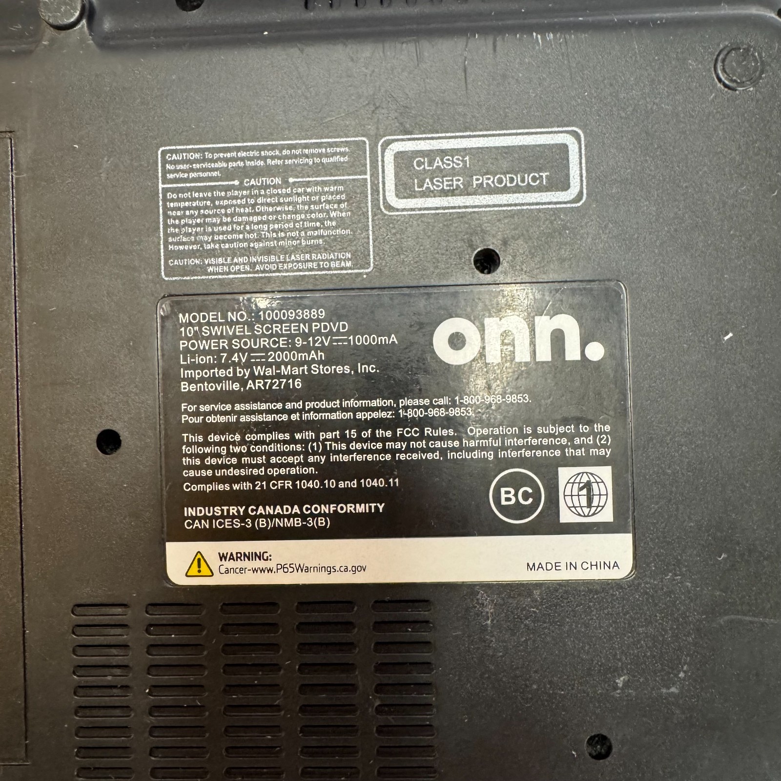 Onn 10 Swivel Screen Portable DVD Player Model 100093889 NOT TESTED