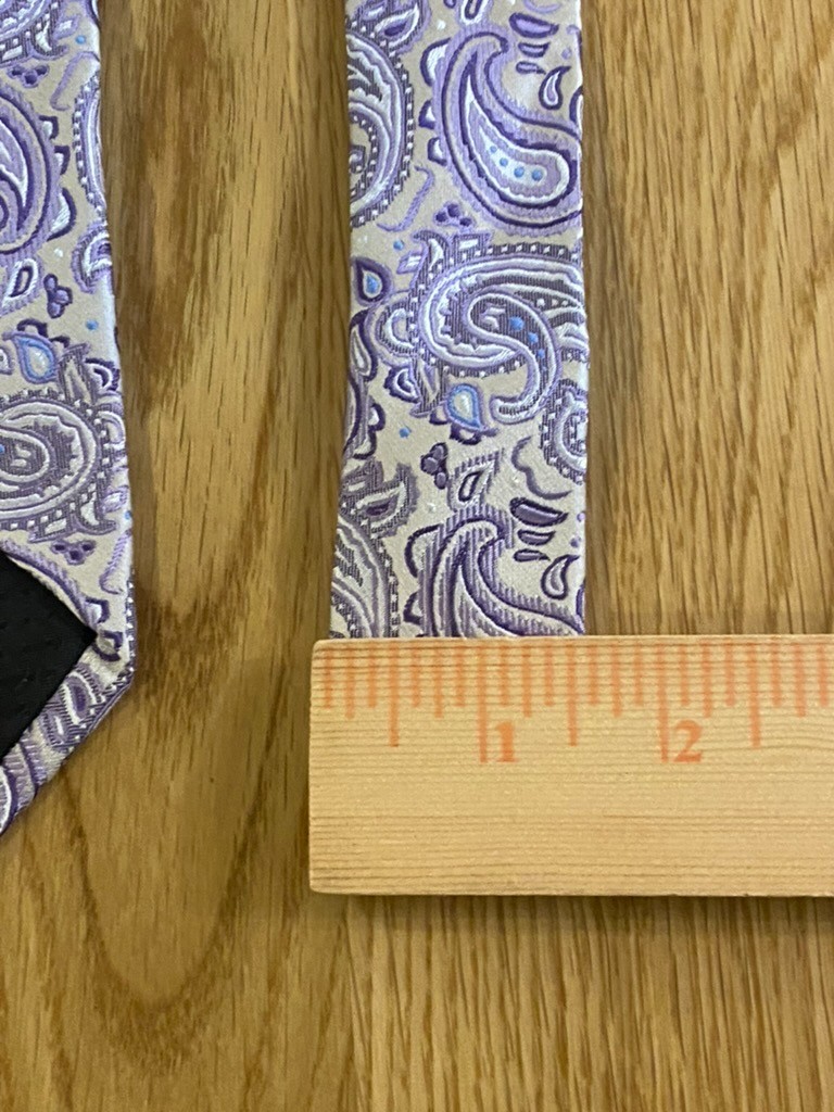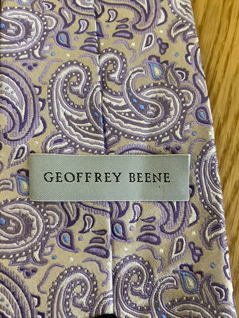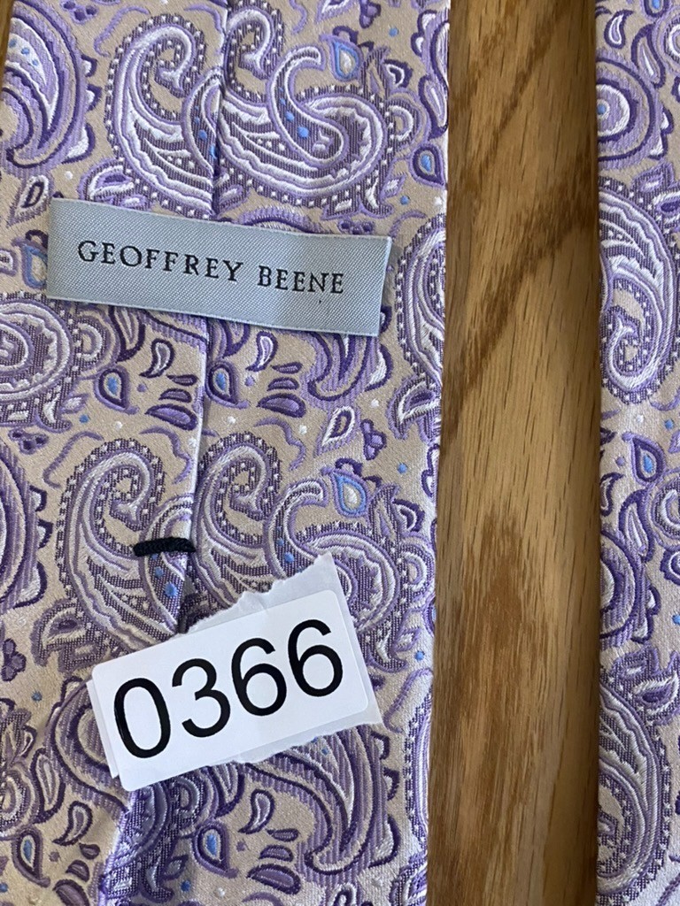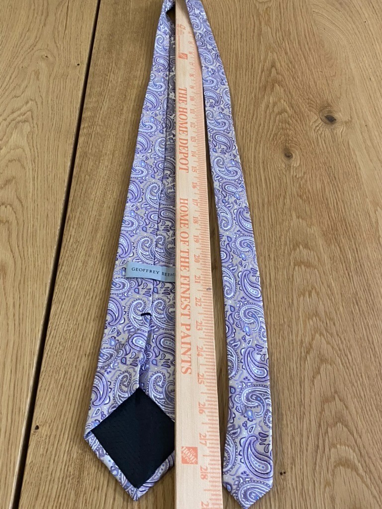 как выглядит Geoffrey Beene 3 1/2W 58" Long Hand Made 100 Silk Tie Paisley Purple фото