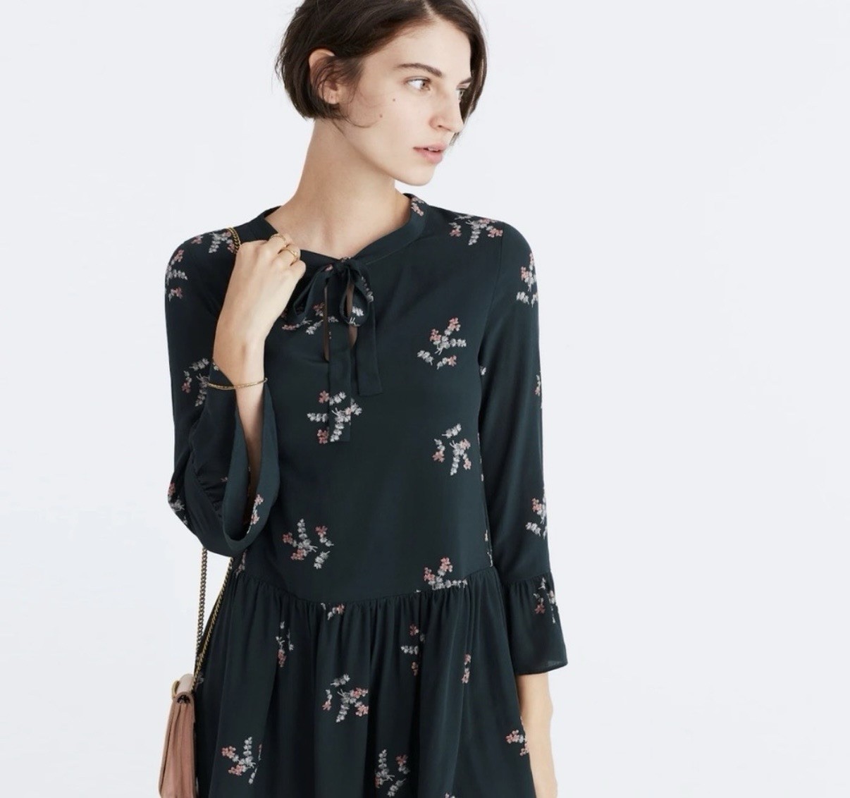 Madewell 100 Silk Green Floral Babydoll Dress Small