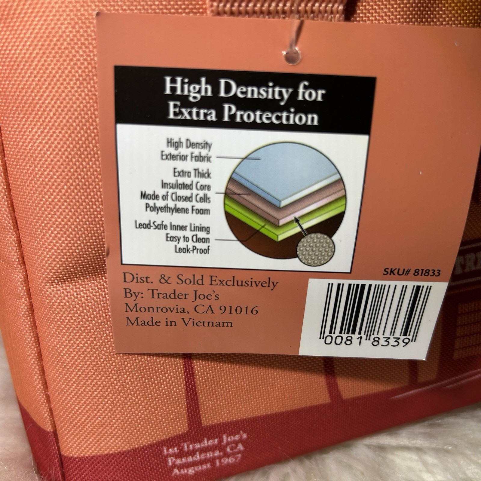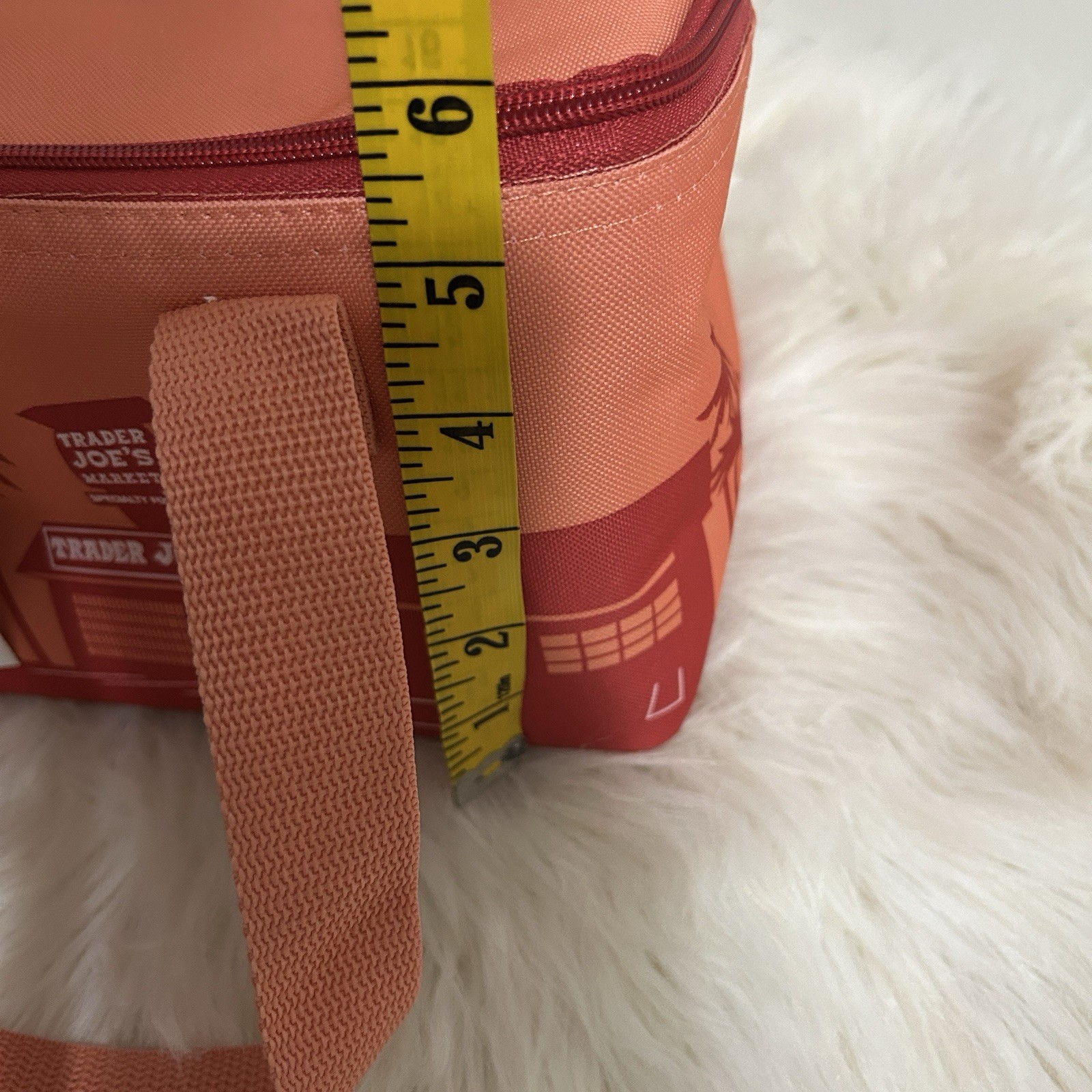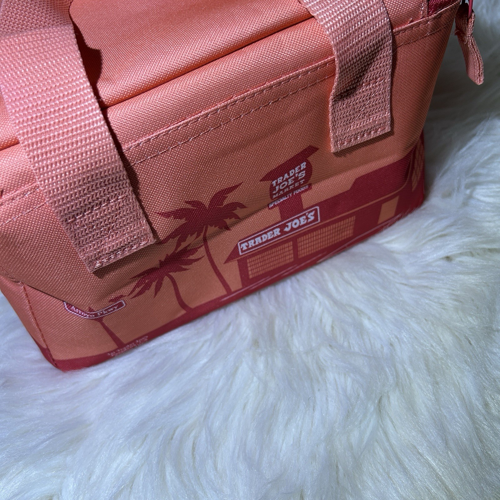 как выглядит Trader Joes Limited Edition Mini Insulated Lunch Tote Bag Peach Holds 1.5 gal фото