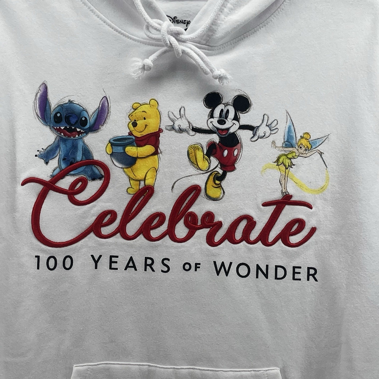 Disney 100 Celebrating 100 Years Of Wonder Junior Hoodie Sz L 11-13 White