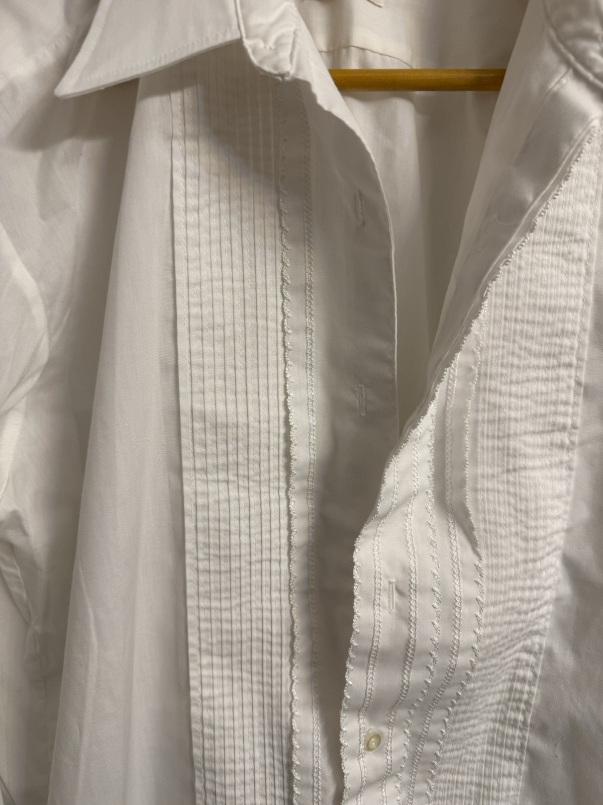как выглядит Vintage After Six Tuxedo Shirt Mens 16.5/34 White Pleated Poplin French Cuff фото