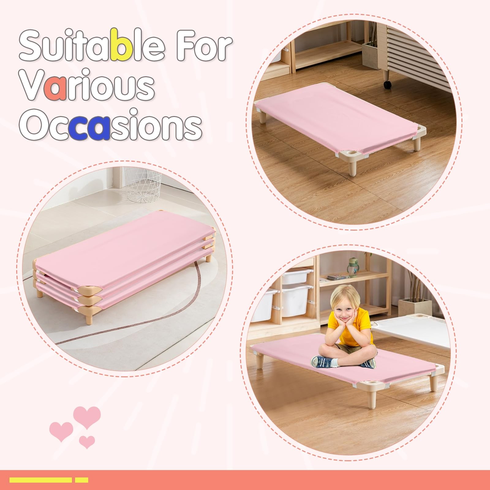 Cot Sheets for Daycare, 23 X 51, Pink Bedding with Elastic Loops, 10 Pcs