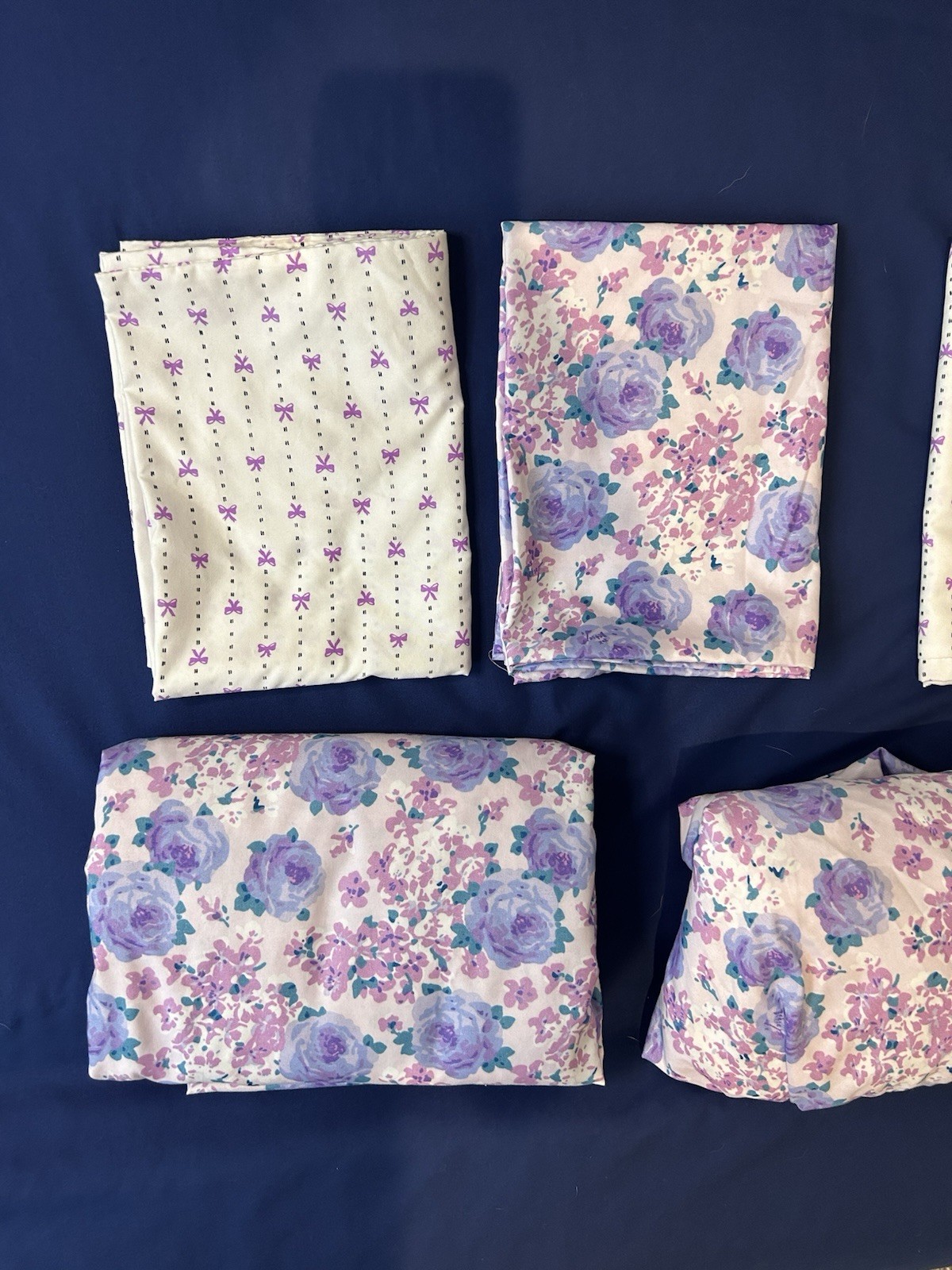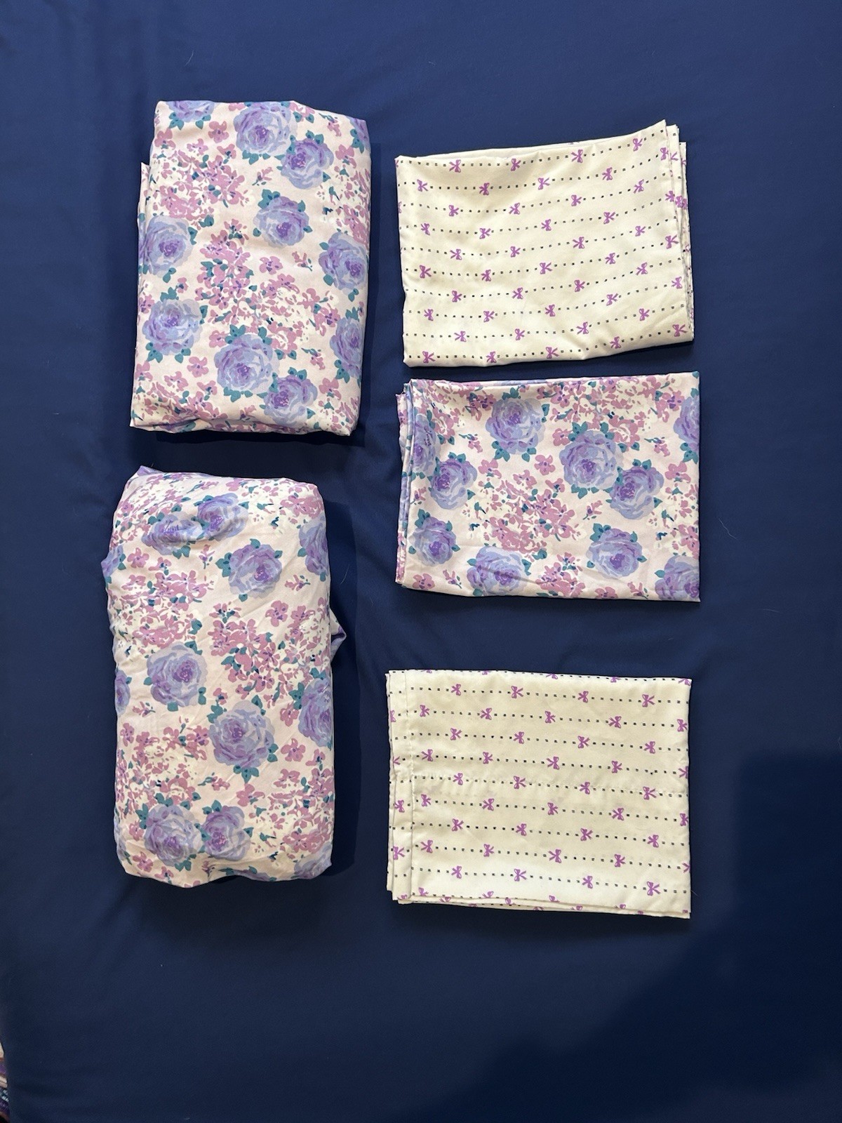 Betsey Johnson PURPLE Pink FLORAL Bows Size Full 5 Piece Sheet Set Girls Room EC