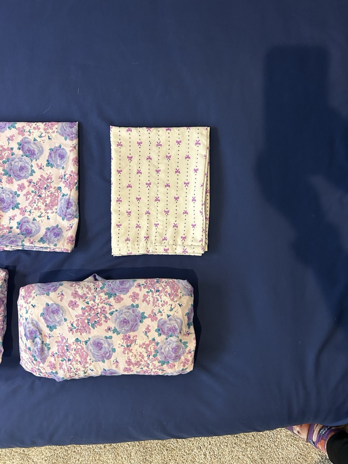 как выглядит Betsey Johnson PURPLE Pink FLORAL Bows Size Full 5 Piece Sheet Set Girls Room EC фото