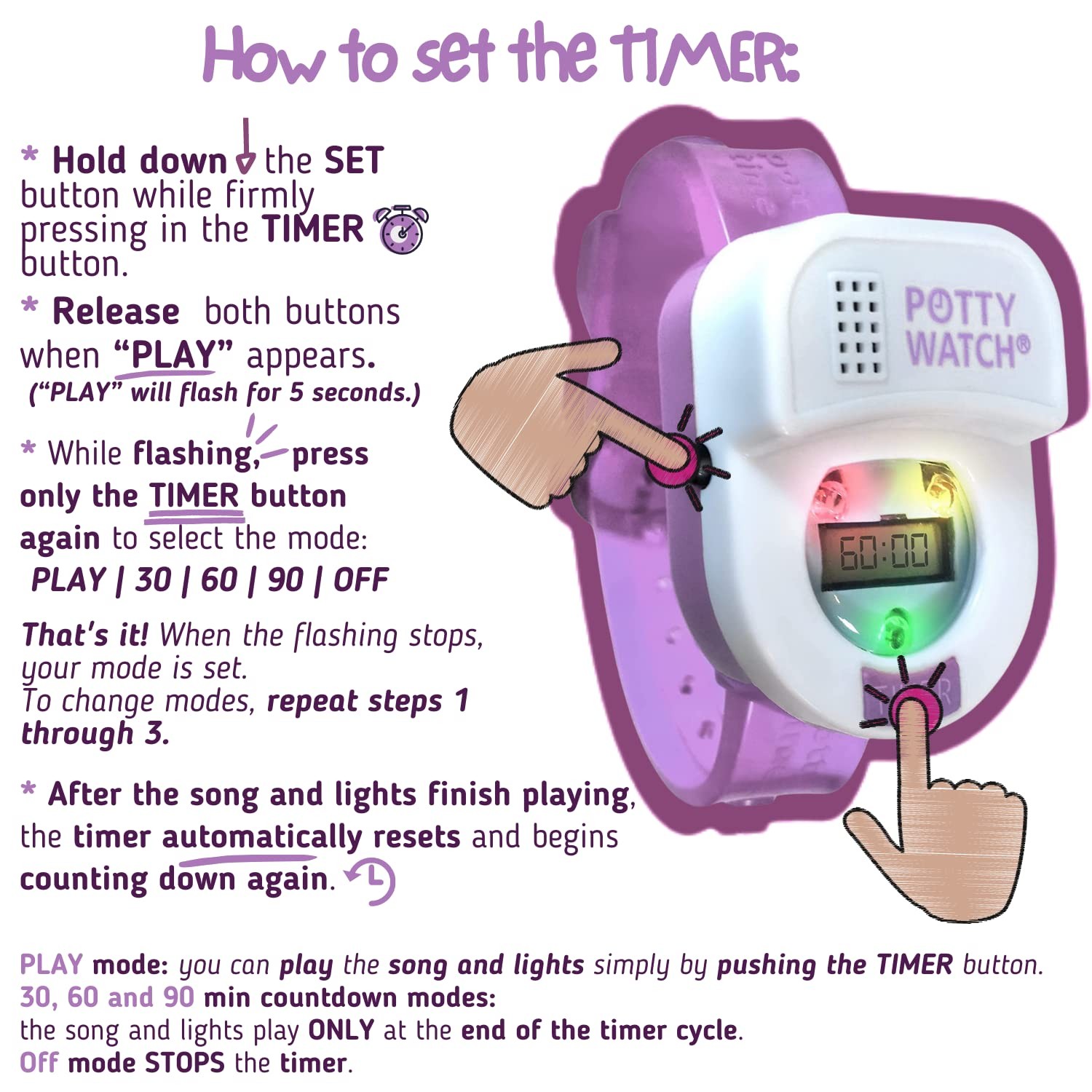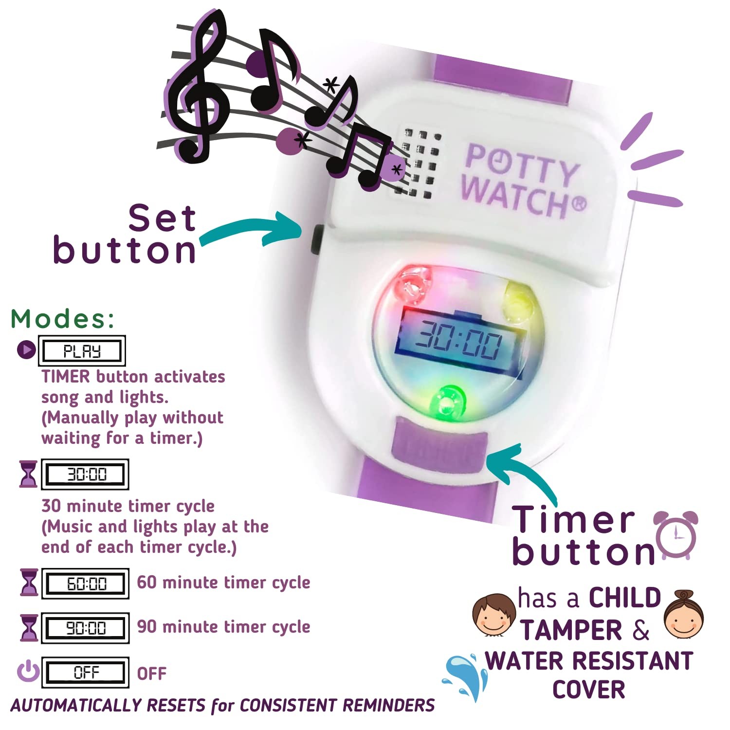 Potty Training Watch with Lights and Music - Timer Reminds Kids Every 30-90 Min