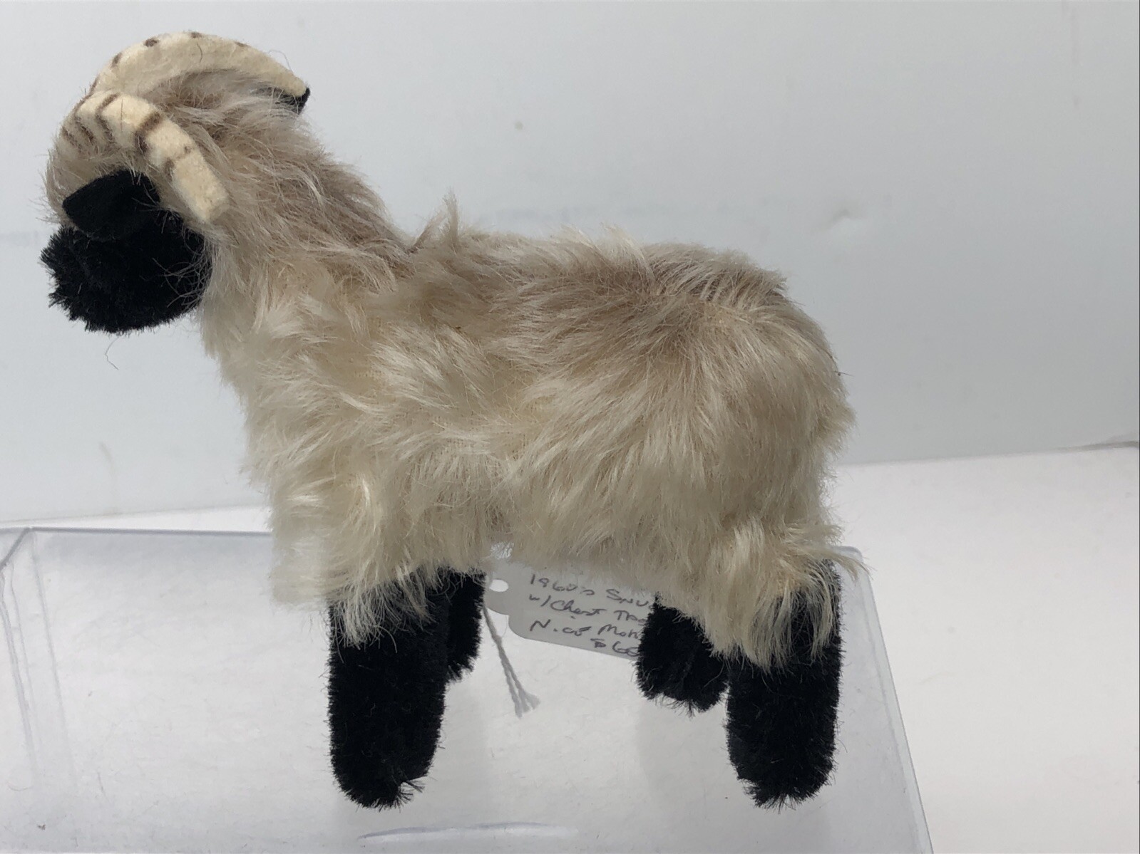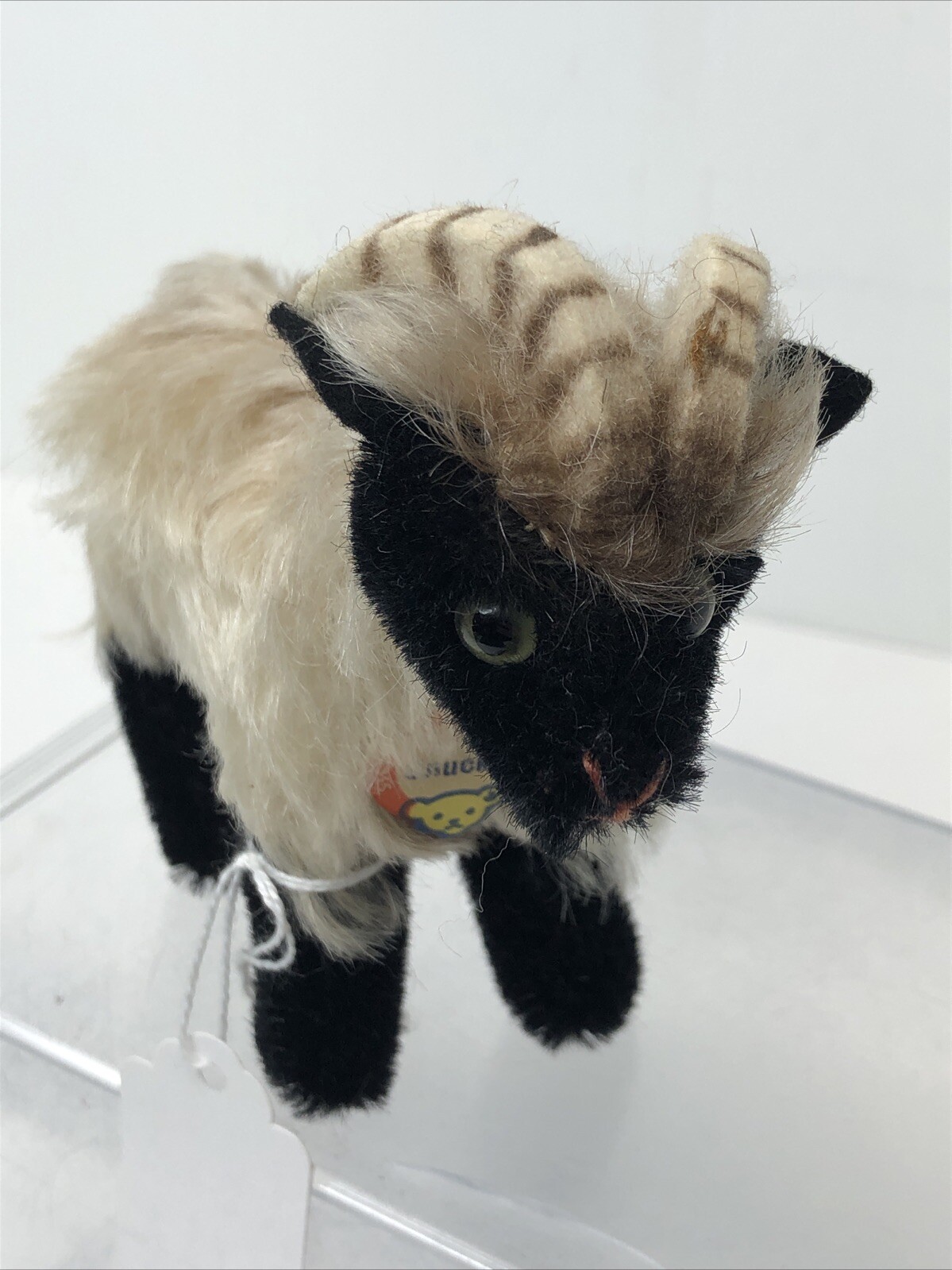 4.5 Tall Vintage Black Cream Mohair Steiff 1960 s Snucki Sheep Ram W/ Tags U