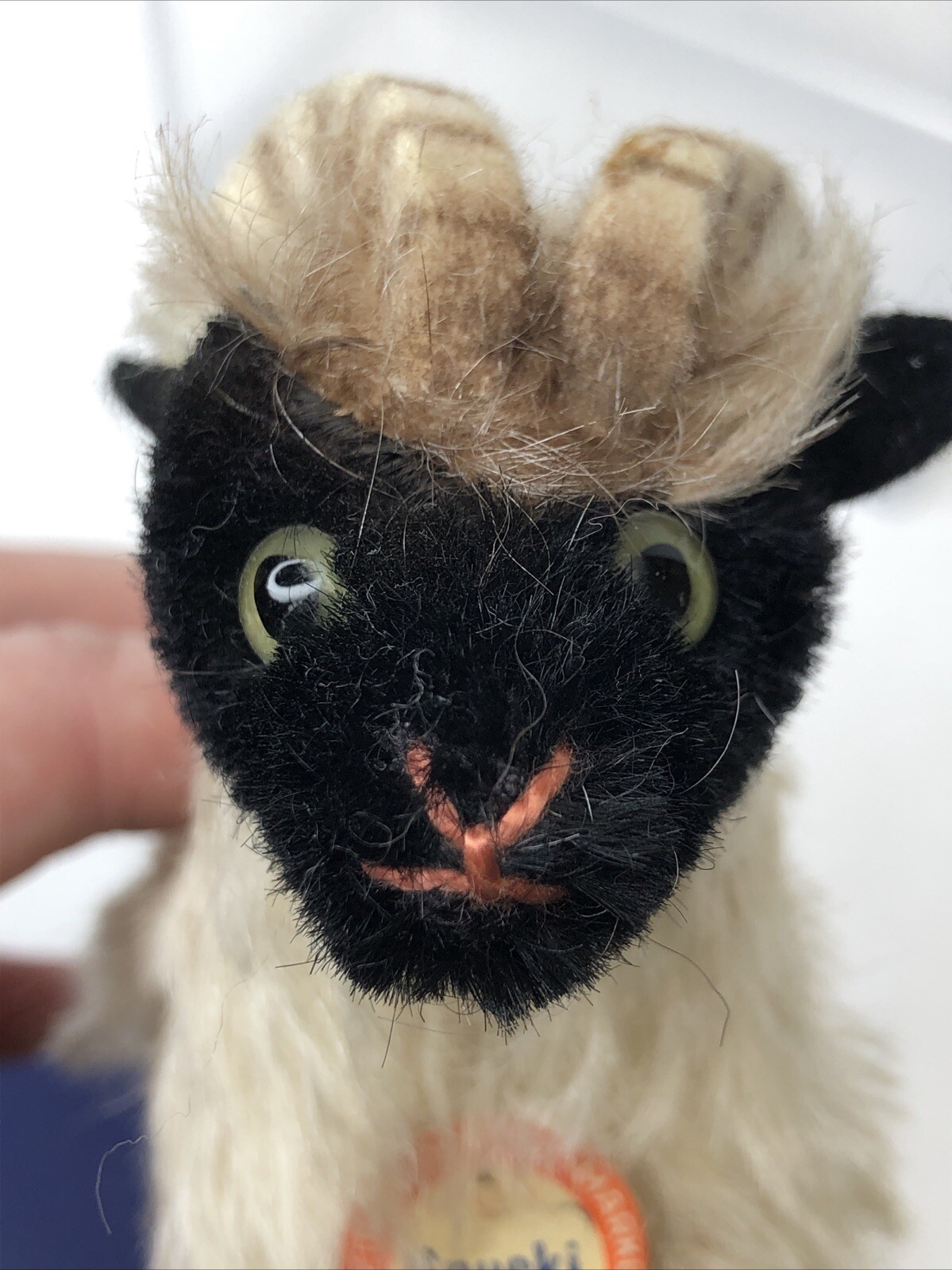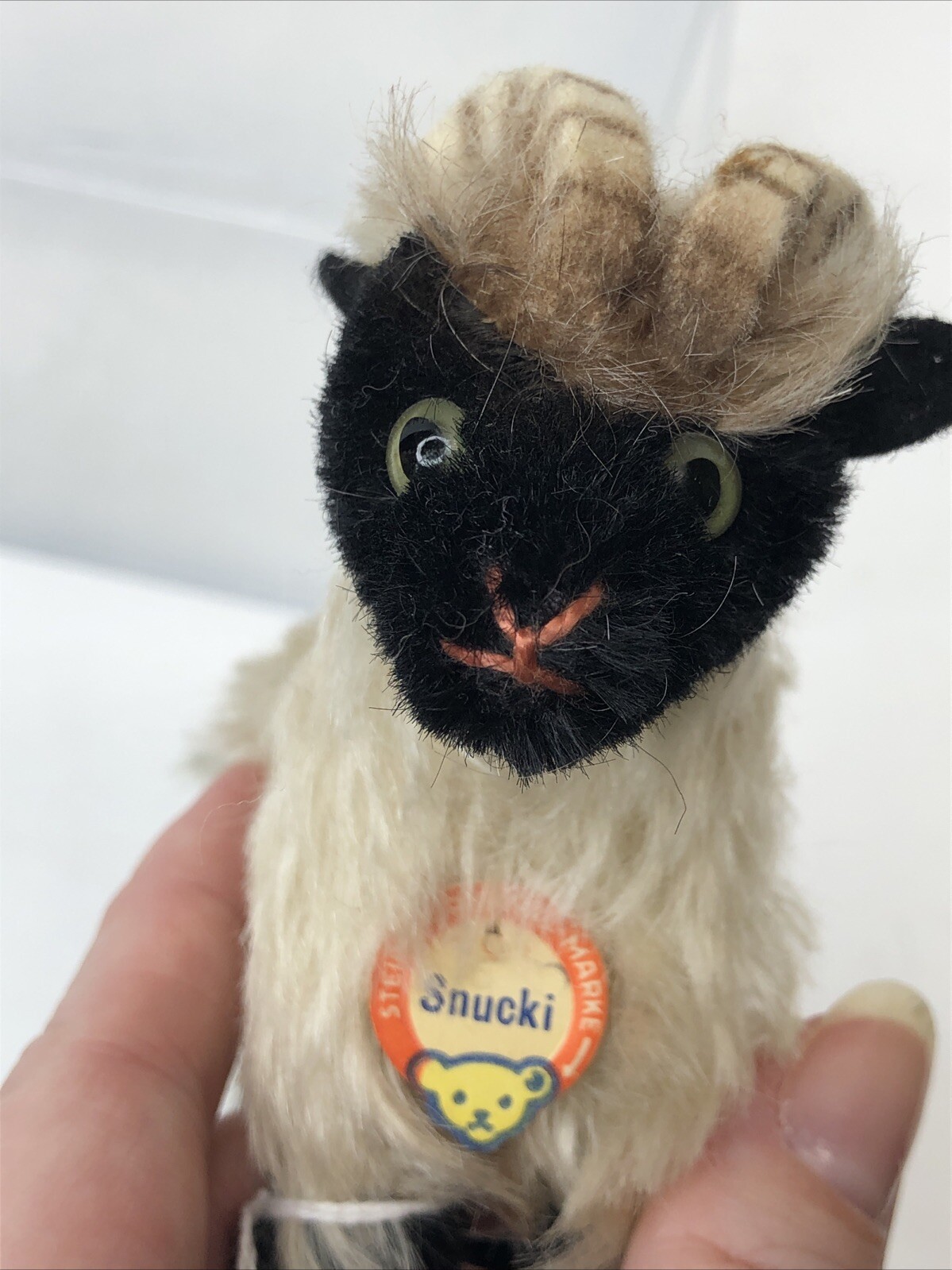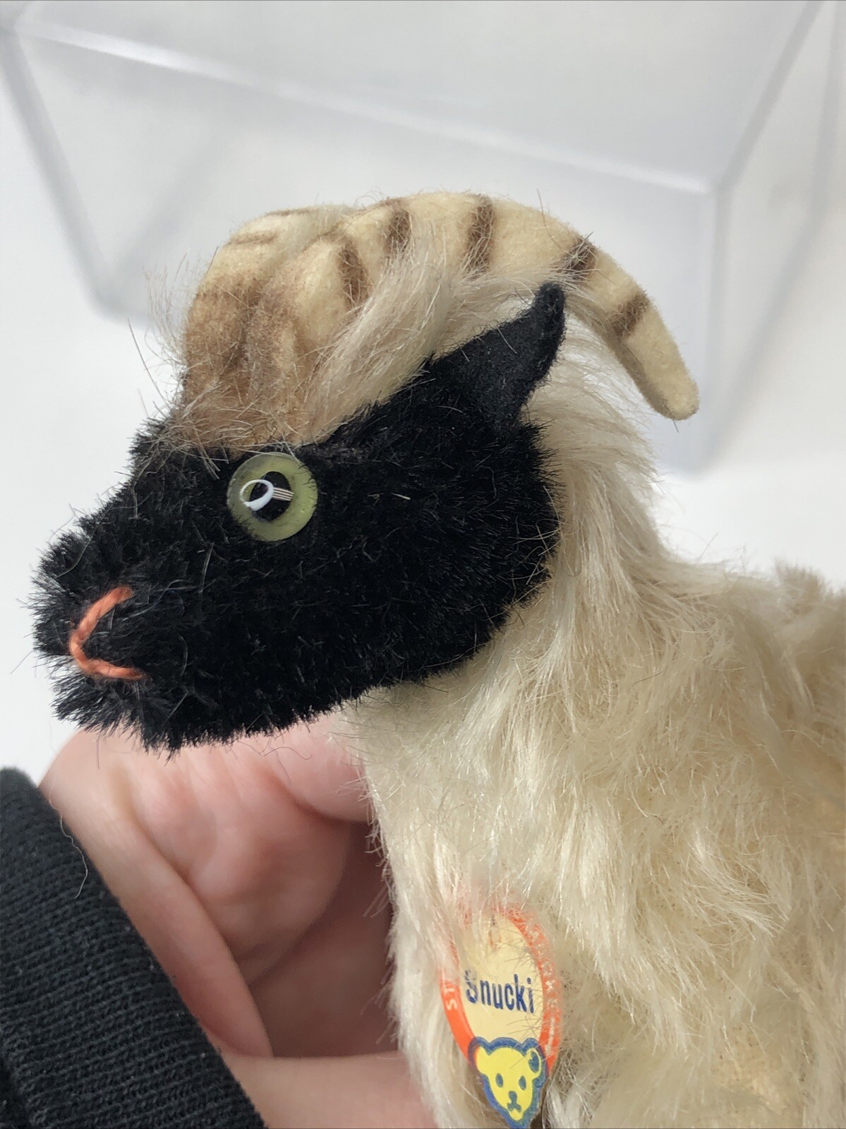как выглядит 4.5 Tall Vintage Black Cream Mohair Steiff 1960 s Snucki Sheep Ram W/ Tags U фото