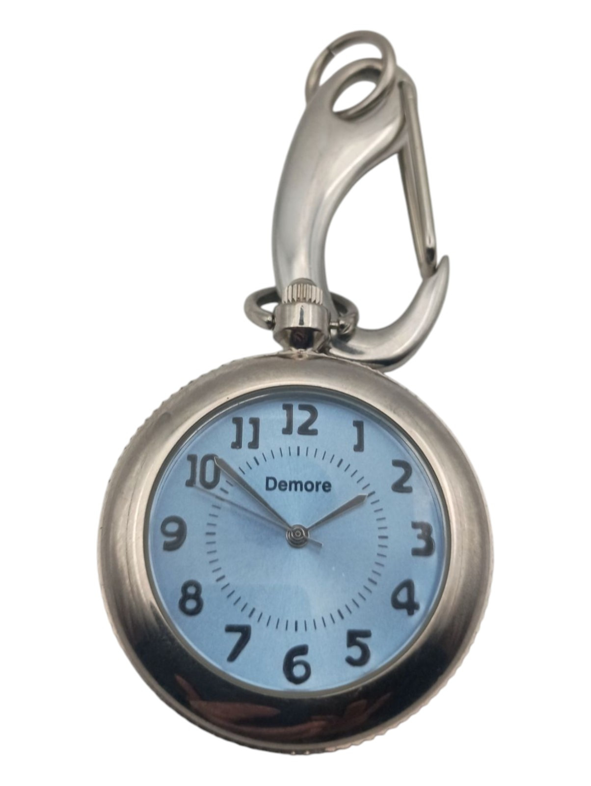 Denmore Pocket watch Open Face Quartz With Carabiner Fresh New Battery