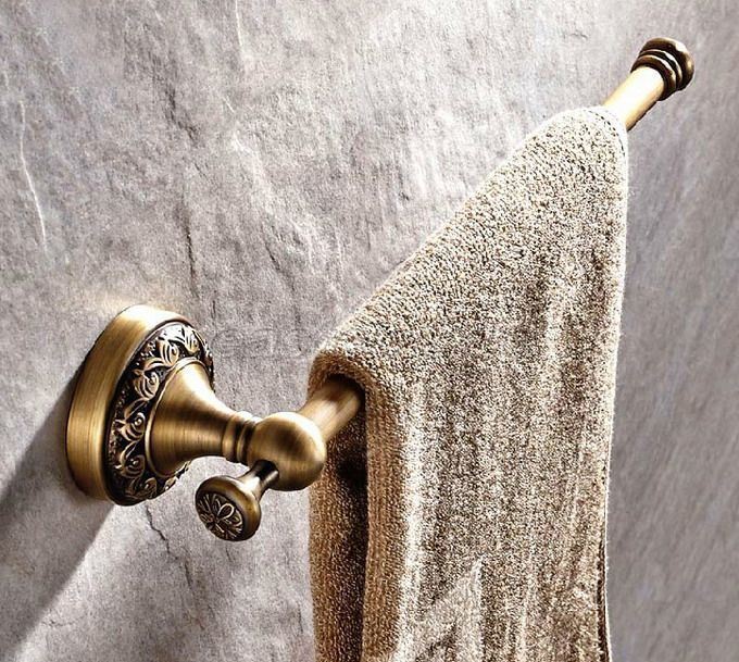 как выглядит Antique Brass Carved Flower Bathroom Wall Mounted Single Towel Bar Holder eba481 фото