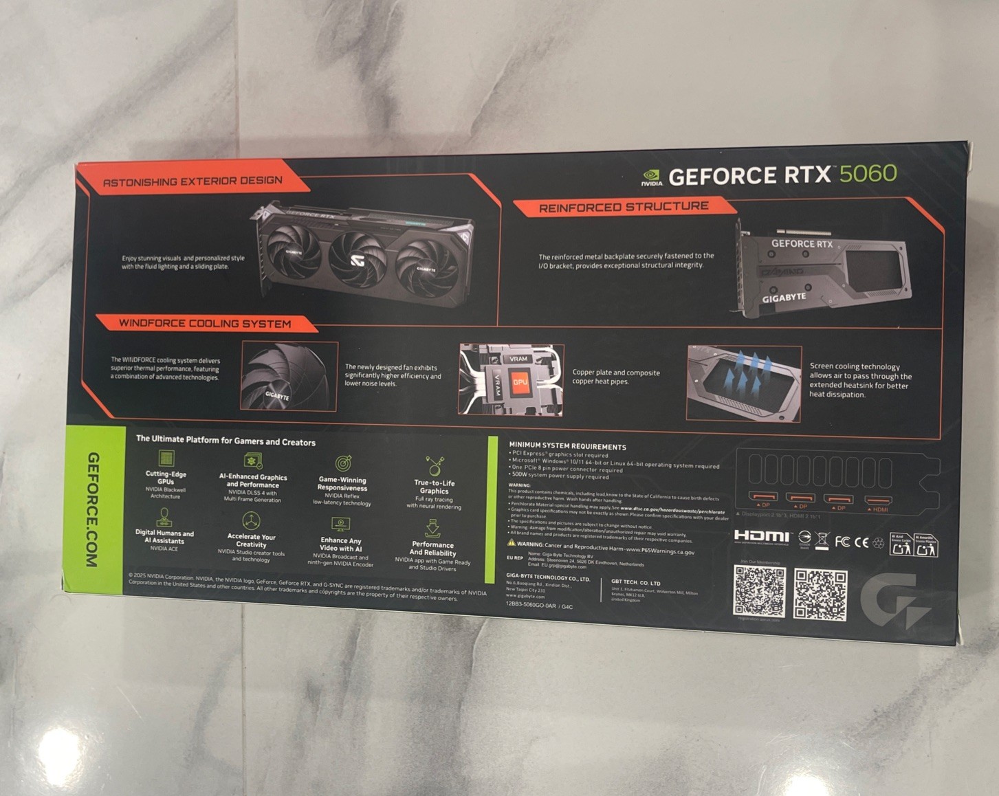 GIGABYTE GEFORCE RTX 5060 GAMING OC GRAPHICS CARD GV-N5060GAMING OC-8GD 8GB